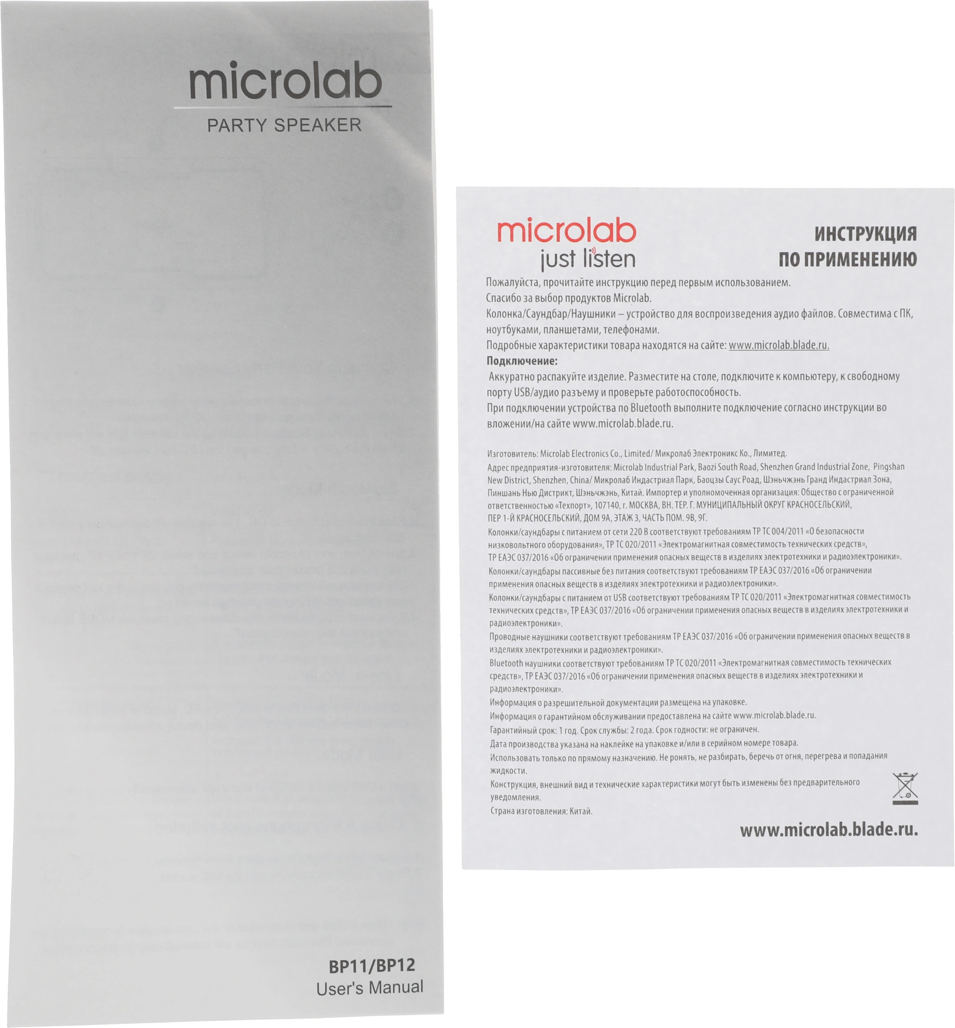 Колонка порт. MicroLab BP11 черный 16W 1.0 BT 10м 1800mAh