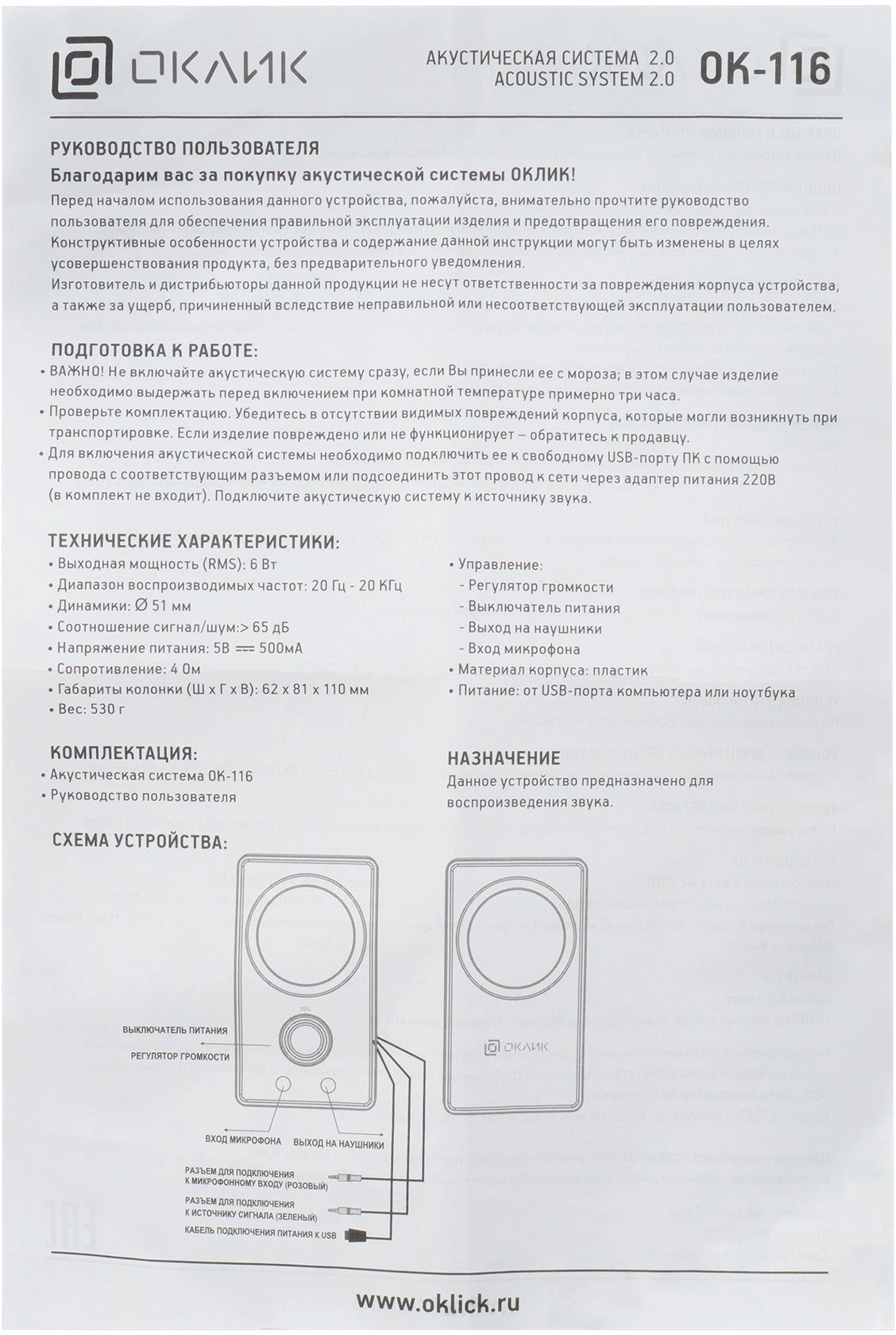 Описание Oklick OK-116 [315691]