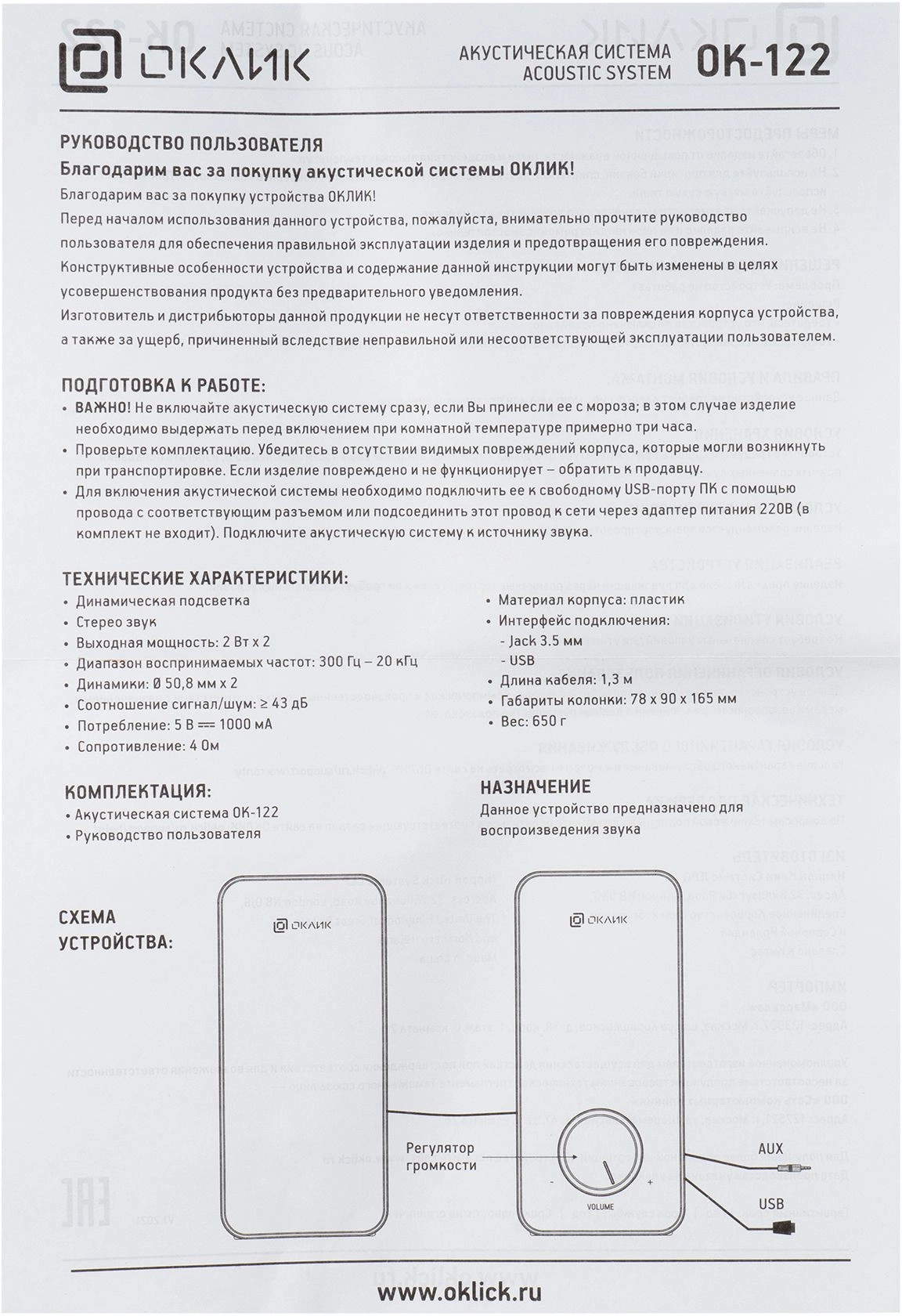 Колонки Oklick OK-122 черный 6Вт [1458492]