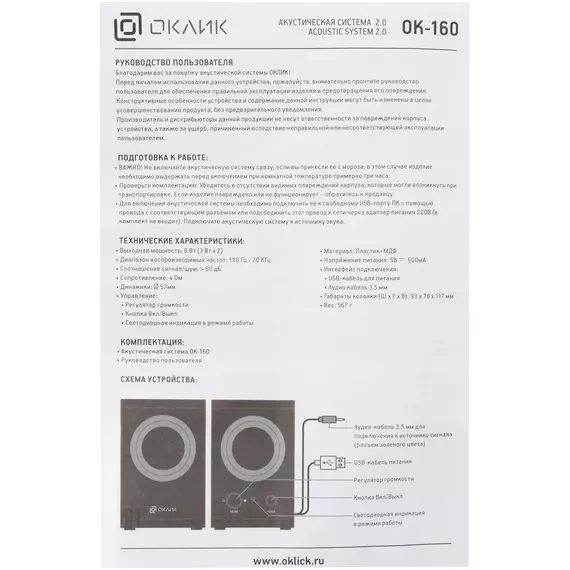 Колонки Oklick OK-160 2.0 черный 6Вт [417559]