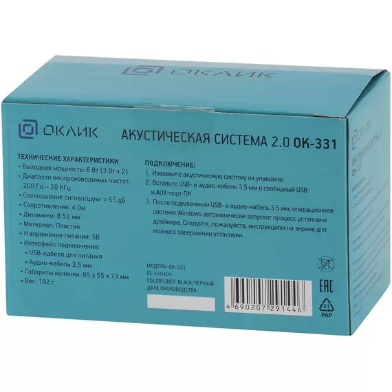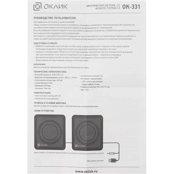 Колонки Oklick OK-331 2.0 черный 6Вт [440404]