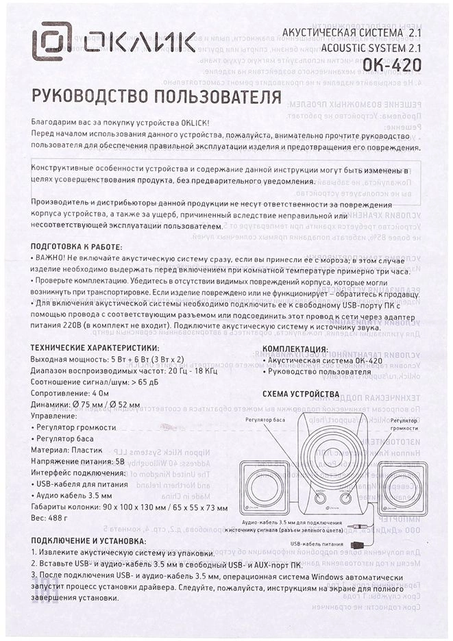 Колонки Oklick OK-420 черный 11Вт [440405]