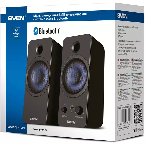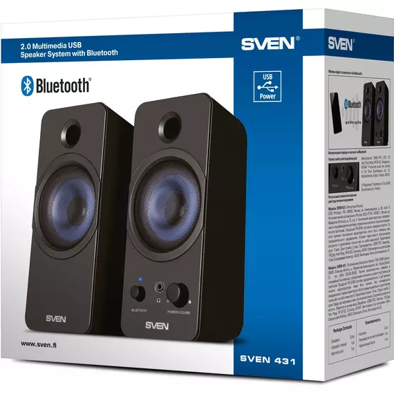 Колонки SVEN 431 2.0 черный 6Вт BT [SV-016296]