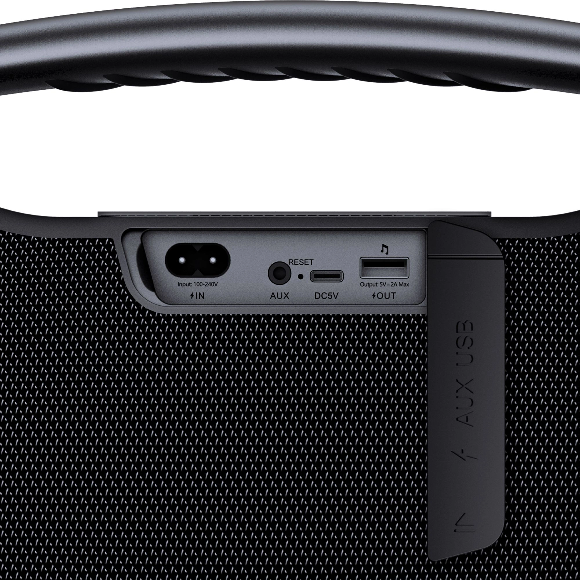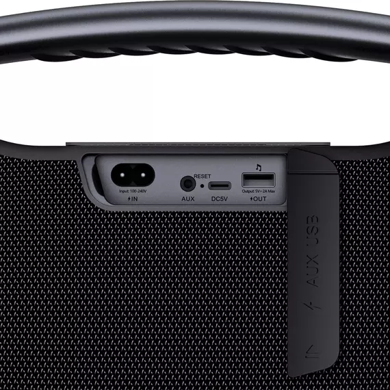 | Особенности | Два способа зарядки: от розетки ~230В или USB type-C (QC/PD). Встроенный в колонку аккумулятор обеспечивает до 16 часов* непрерывной работы в режиме воспроизведения.* при 30% громкости, базовые настройки эквалайзера, в режиме Bluetooth, без подсветки, при комнатной температуре |