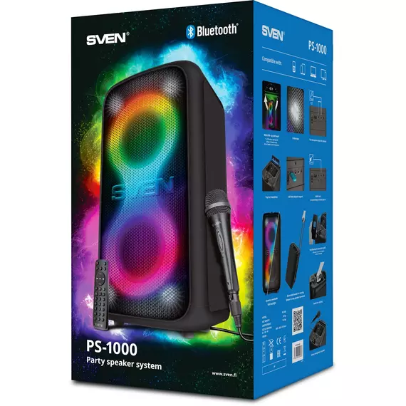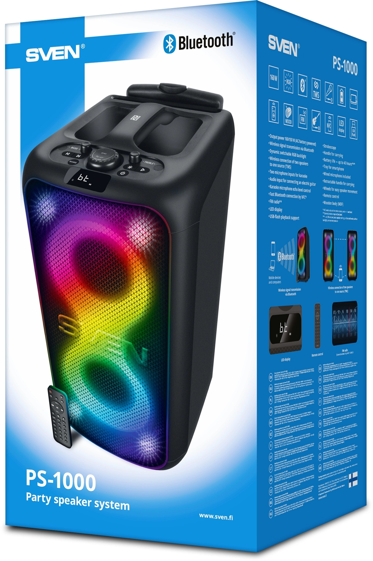 Колонка порт. SVEN PS-1000 черный 160W 1.0 BT/3.5Jack 10м 8000mAh [SV-022686]