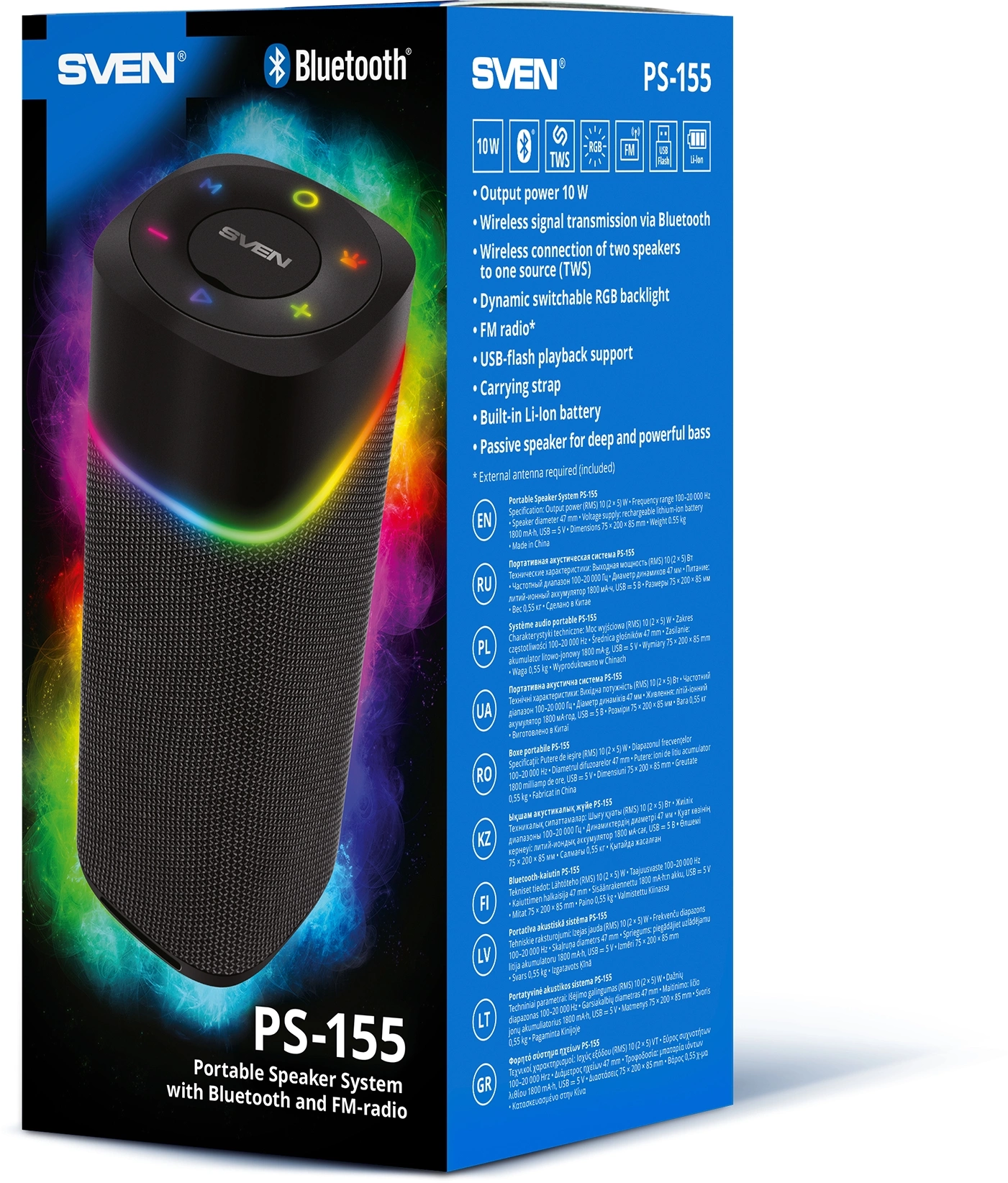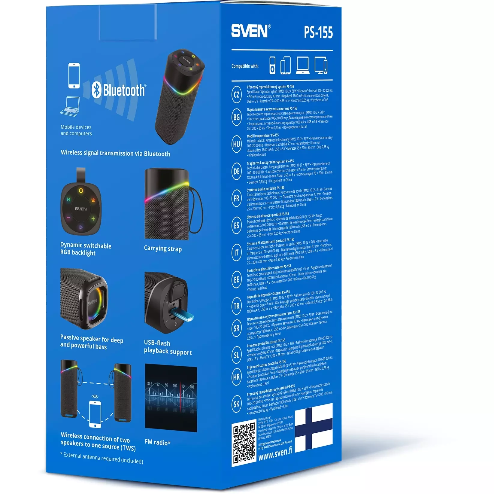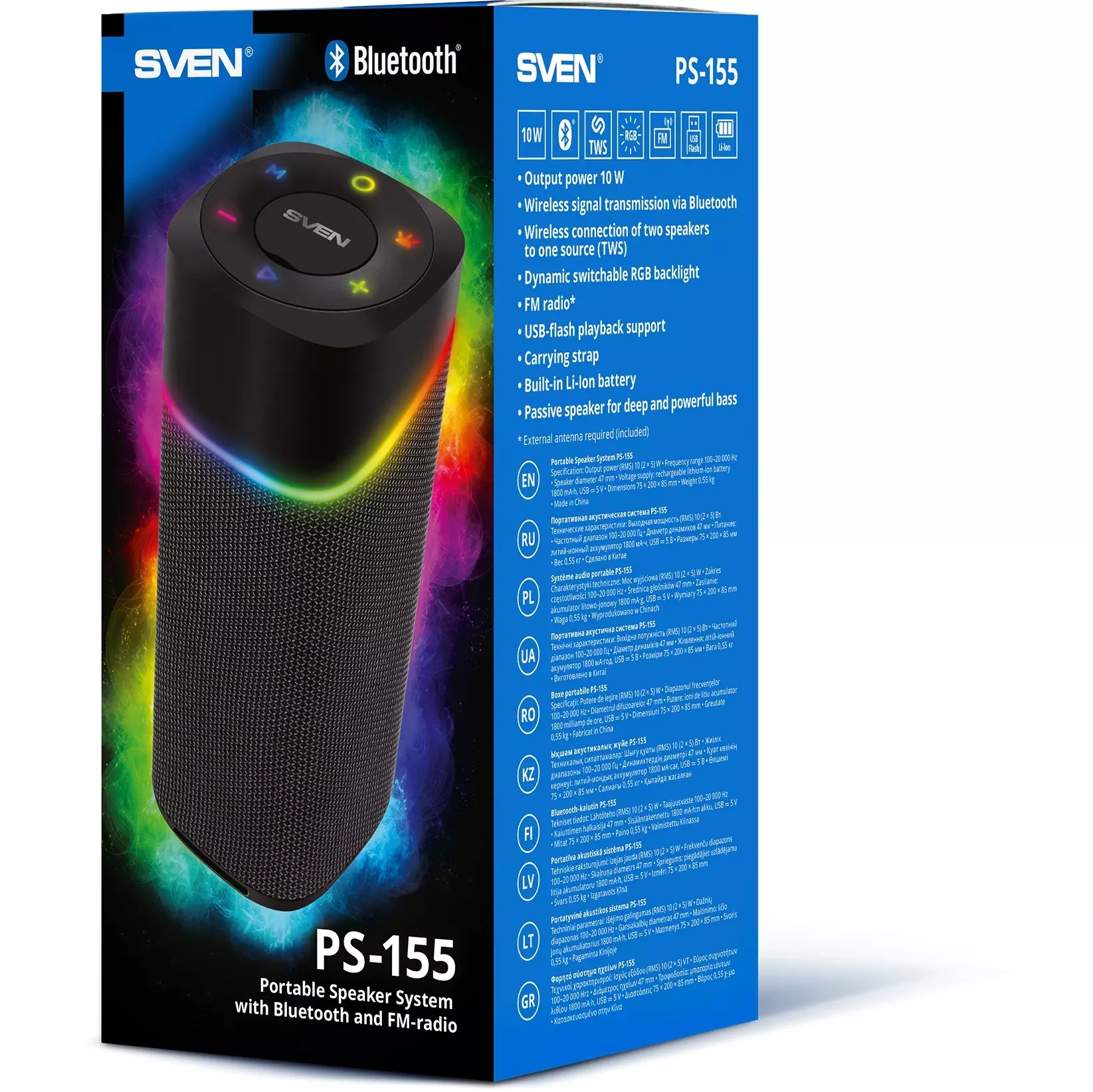 Колонка порт. SVEN PS-155 черный 10W 2.0 BT 3.5Jack 1800mAh [SV-022334]