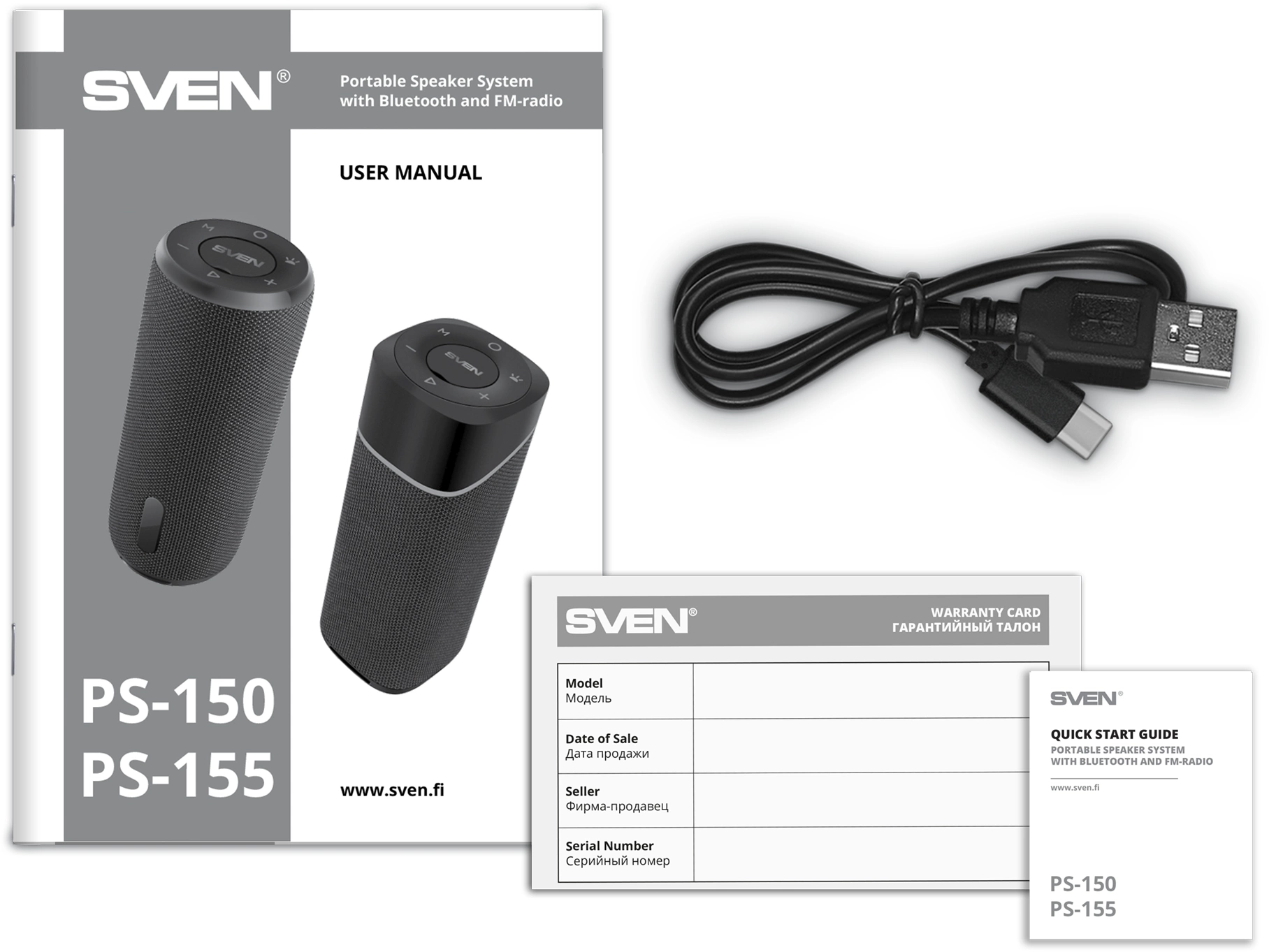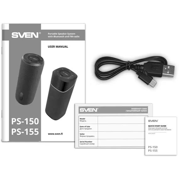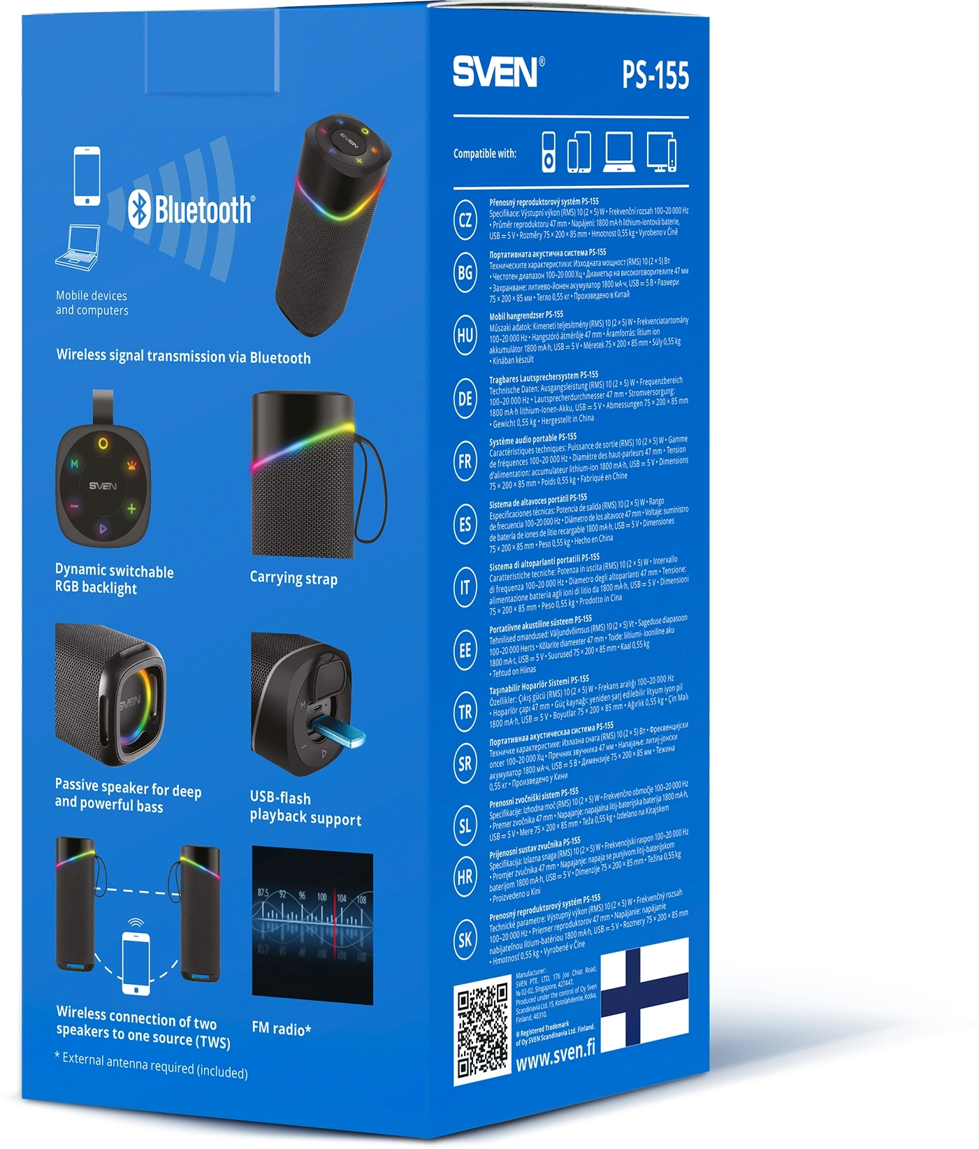 Колонка порт. SVEN PS-155 черный 10W 2.0 BT 3.5Jack 1800mAh [SV-022334]