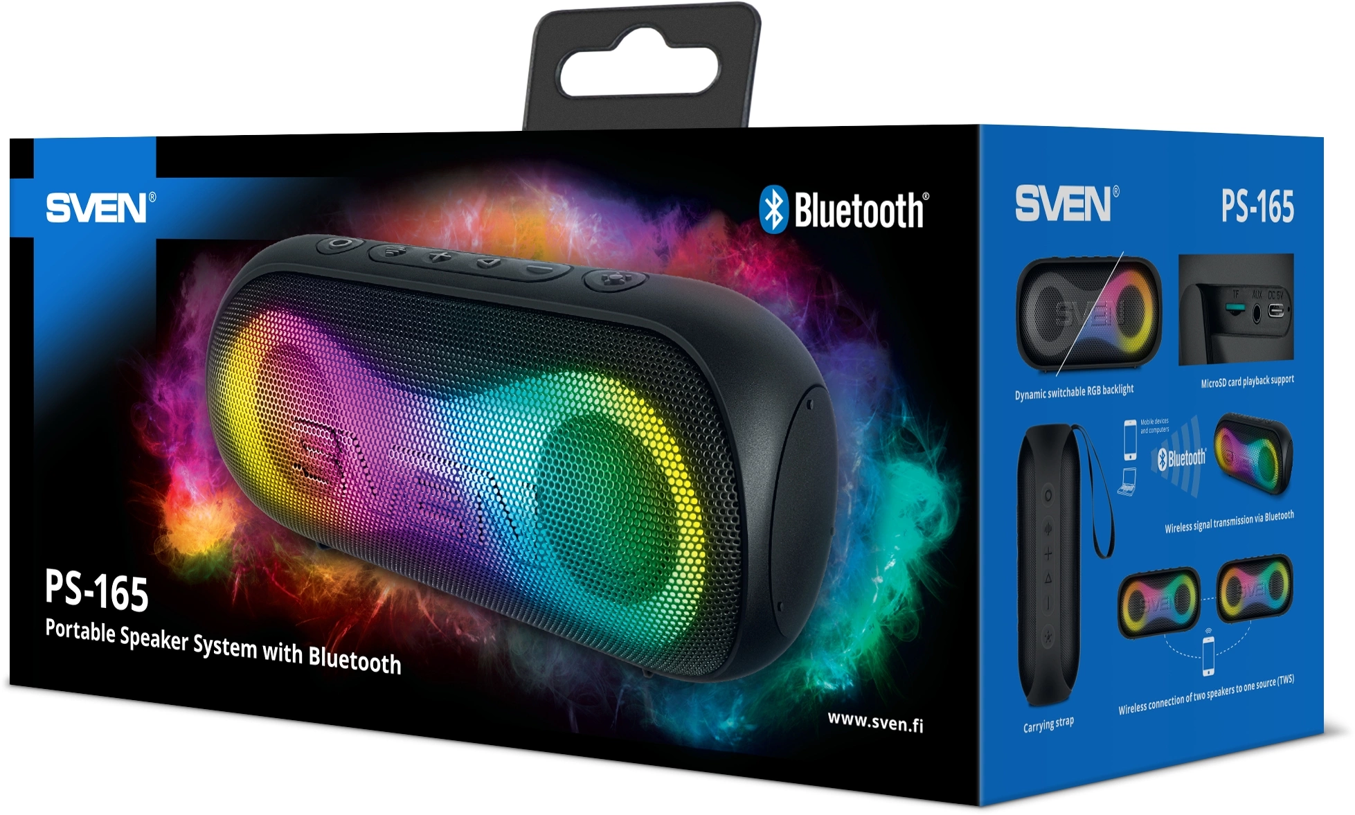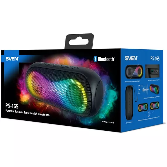 Колонка порт. SVEN PS-165 черный 16W 2.0 BT/3.5Jack 3000mAh [SV-022372]