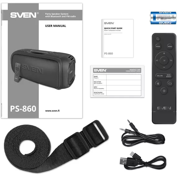 Колонка портативная SVEN PS-860 черный 100W 1.0 BT/3.5Jack 5400mAh [SV-022518]