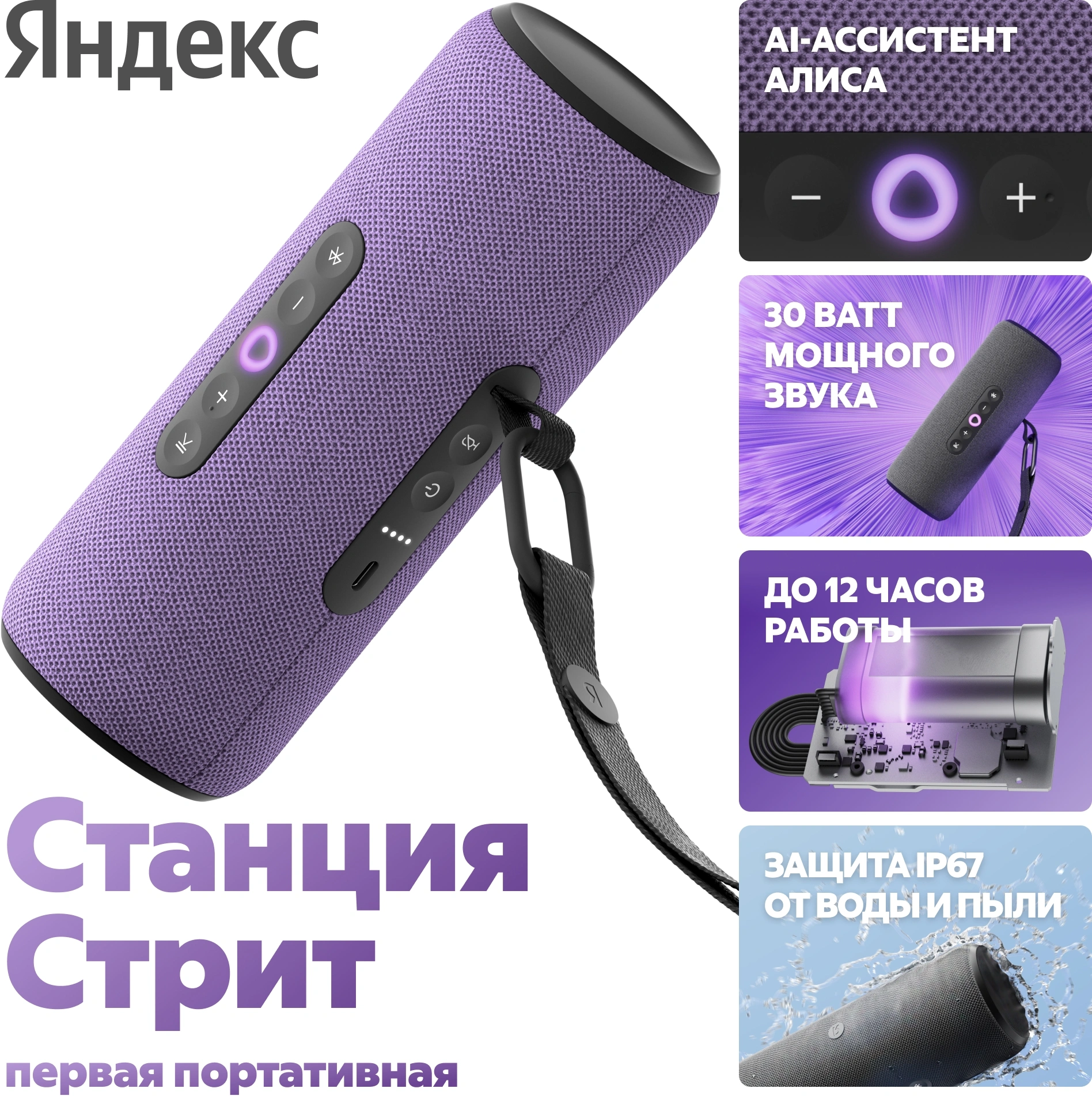 Умная колонка Яндекс Стрит Алиса фиолетовый 30W 2.0 BT Wi-Fi 10м 3300mAh [YNDX-00030VIO]