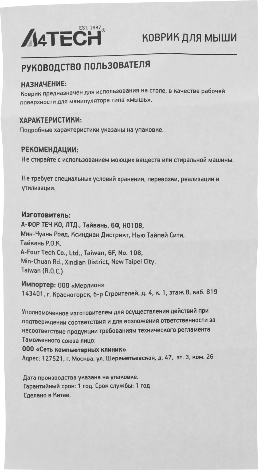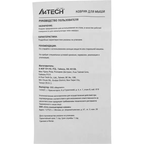 | Срок гарантии | 12 мес. |