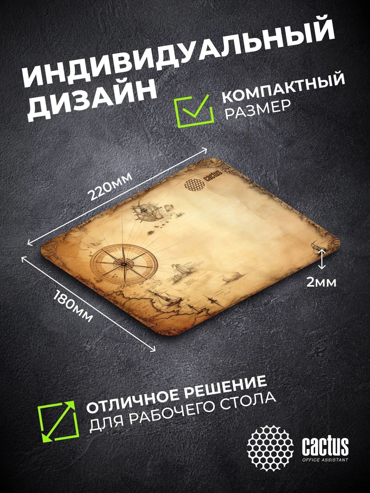 Коврик для мыши Cactus Antique map 220x180x2мм [CS-MP-P08XS]