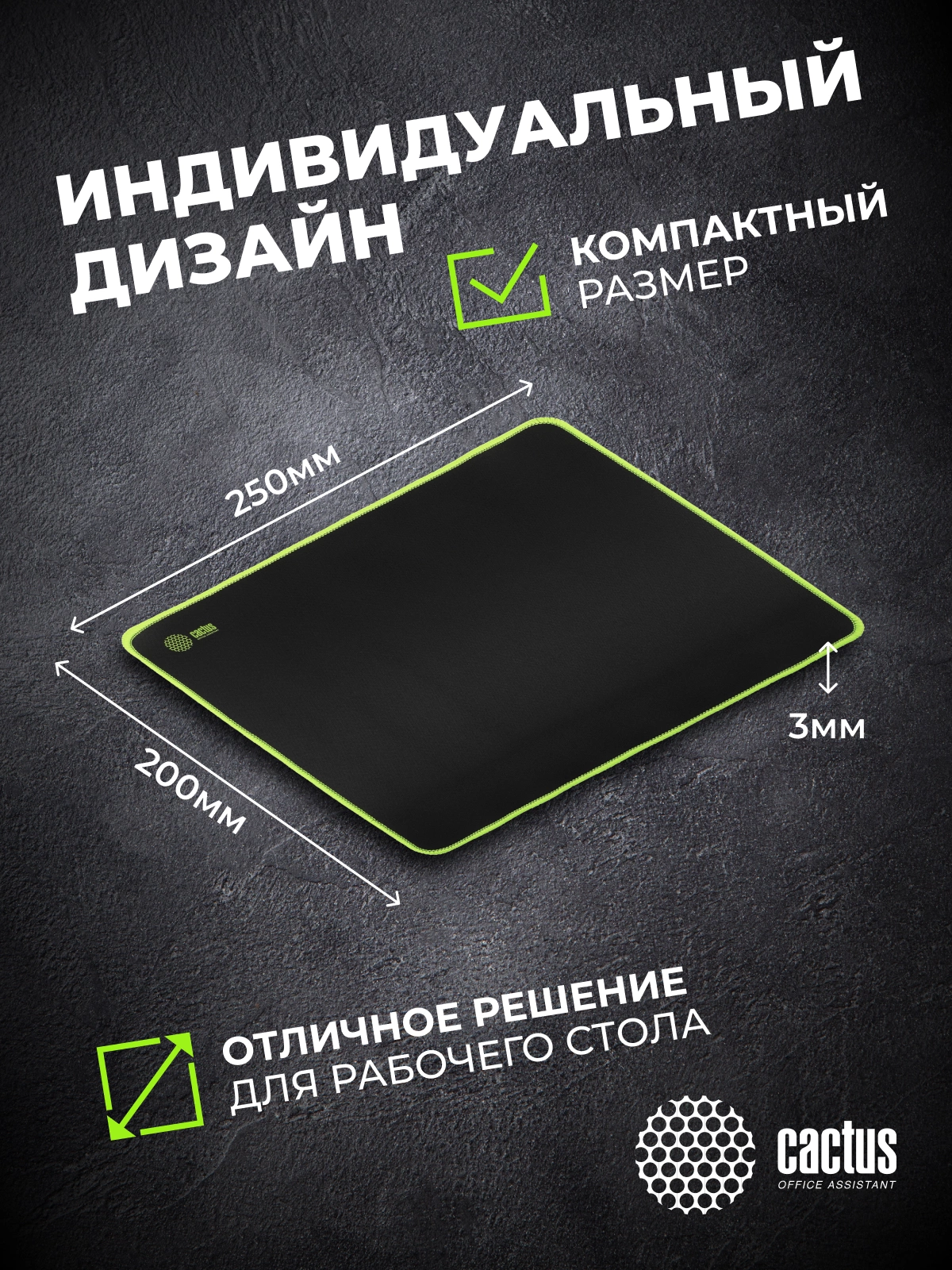 Коврик для мыши Cactus Cactus Black черный 250x200x3мм [CS-MPC-D01S]
