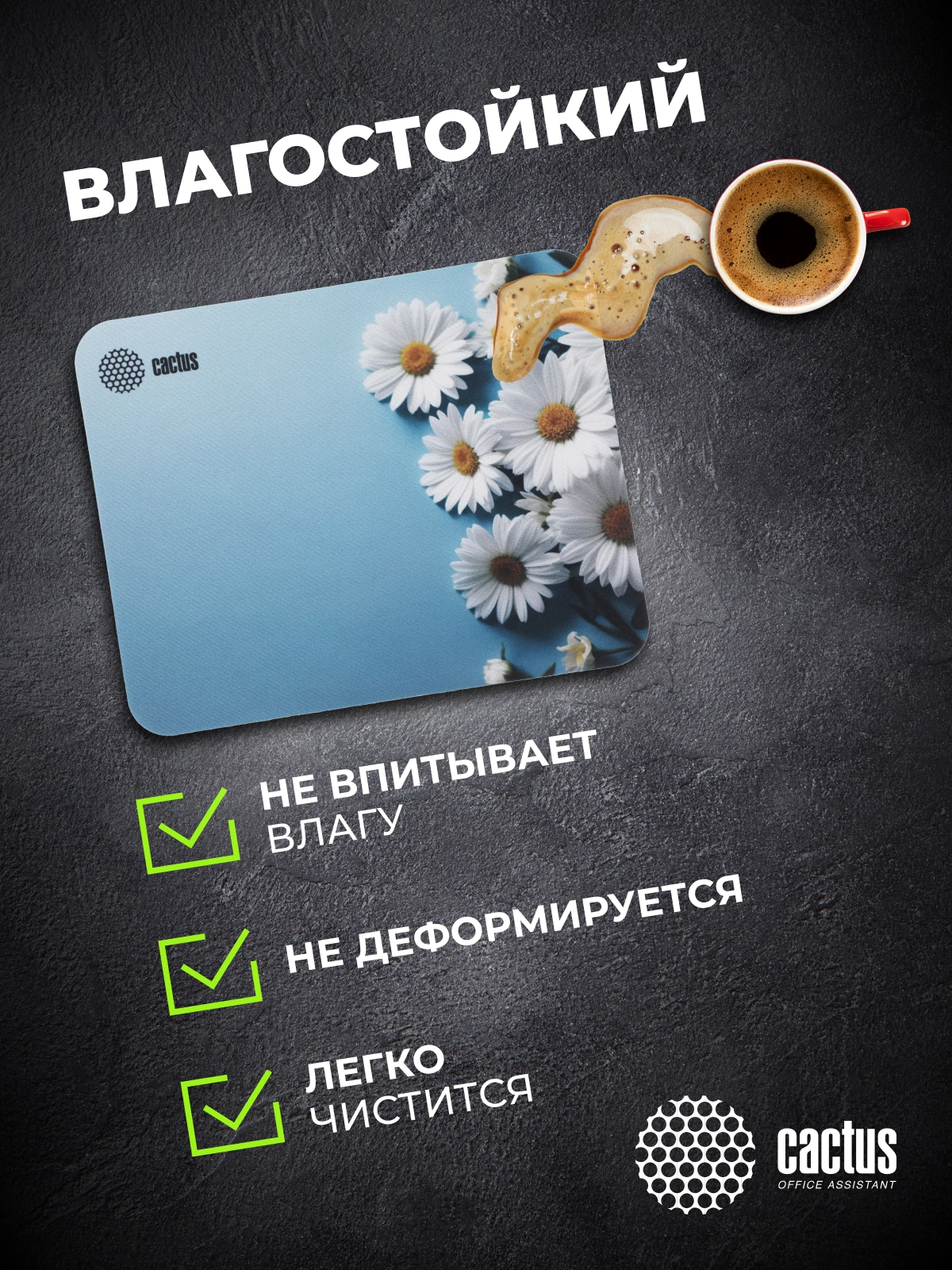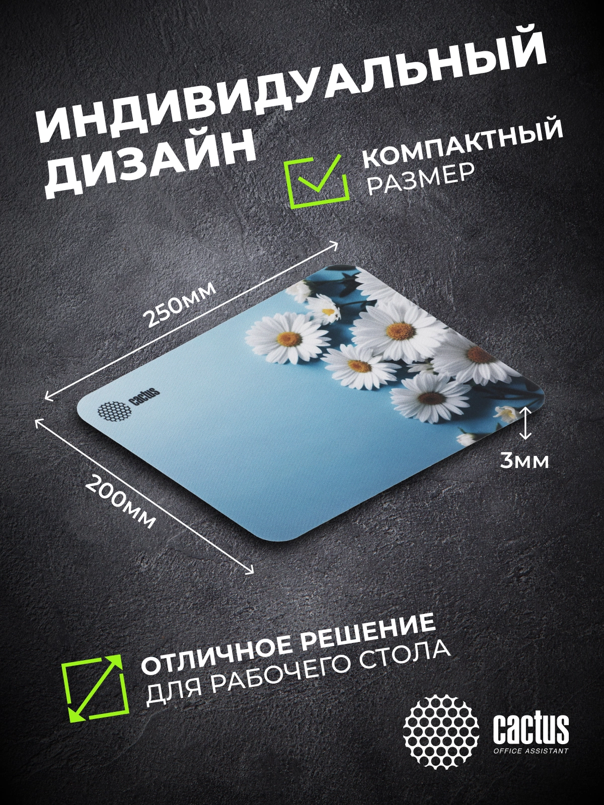 Коврик для мыши Cactus Daisies рисунок 250x200x3мм [CS-MP-D07S]