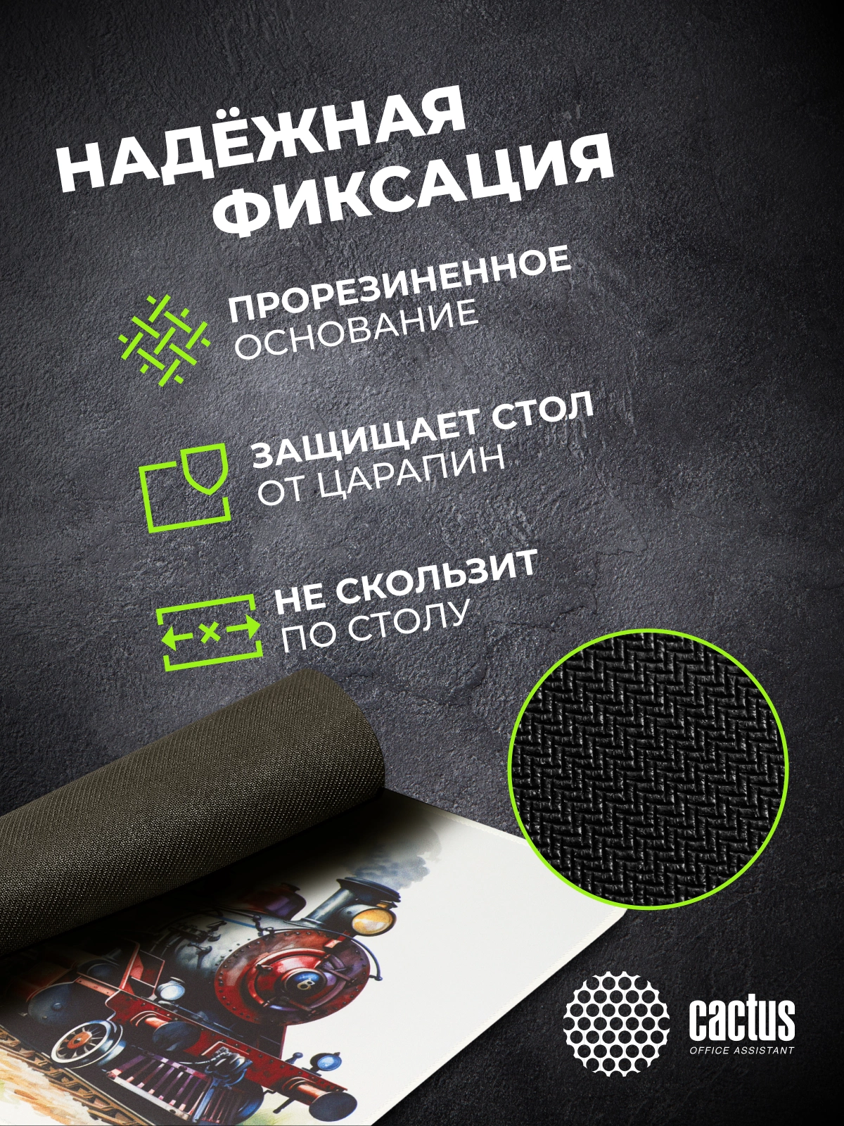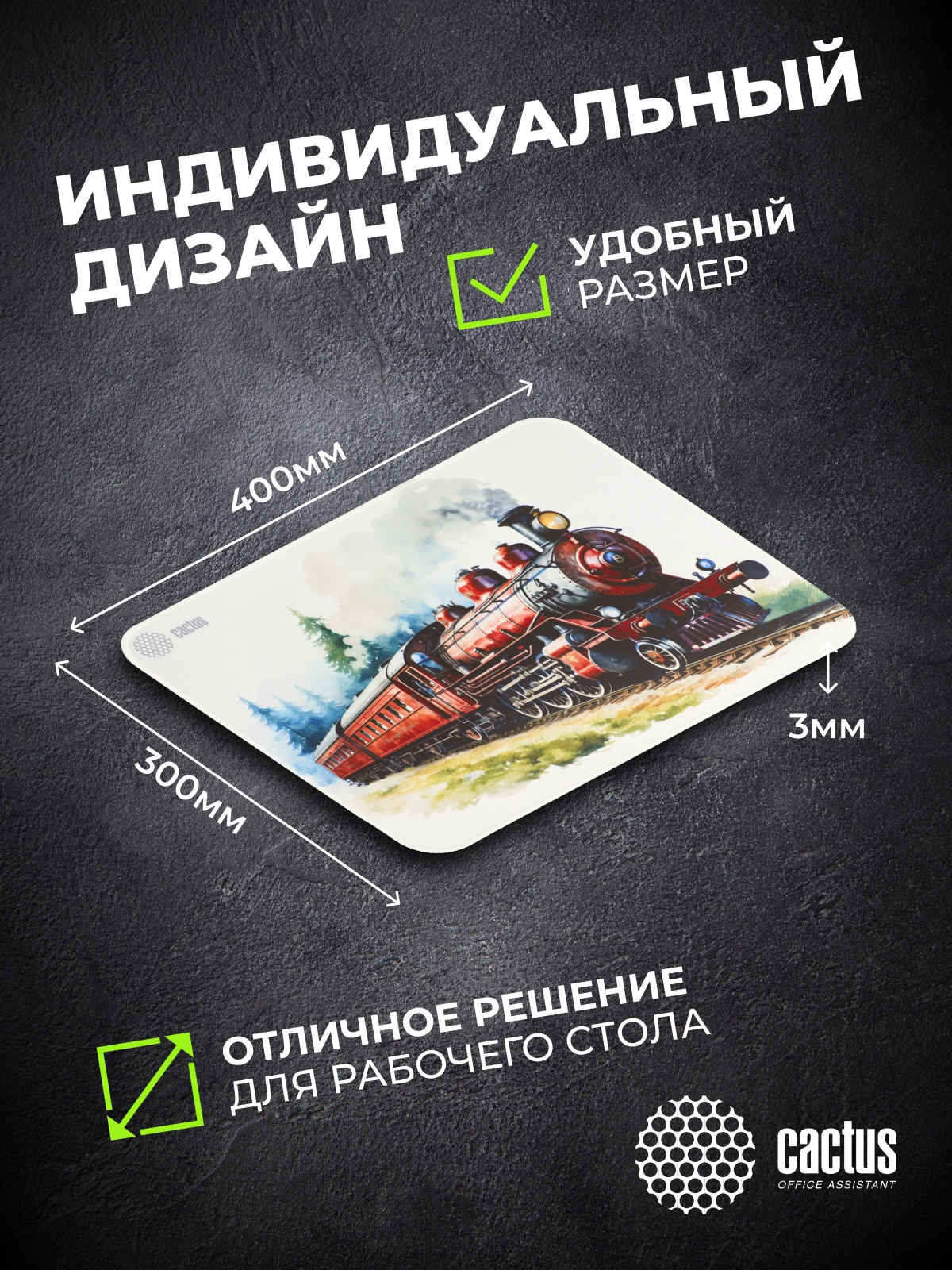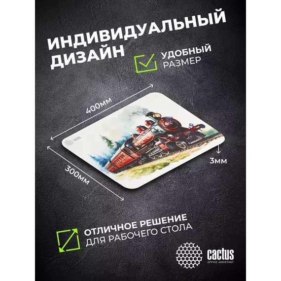 Коврик для мыши Cactus Locomotive рисунок 400x300x3мм [CS-MP-PRO17XL]