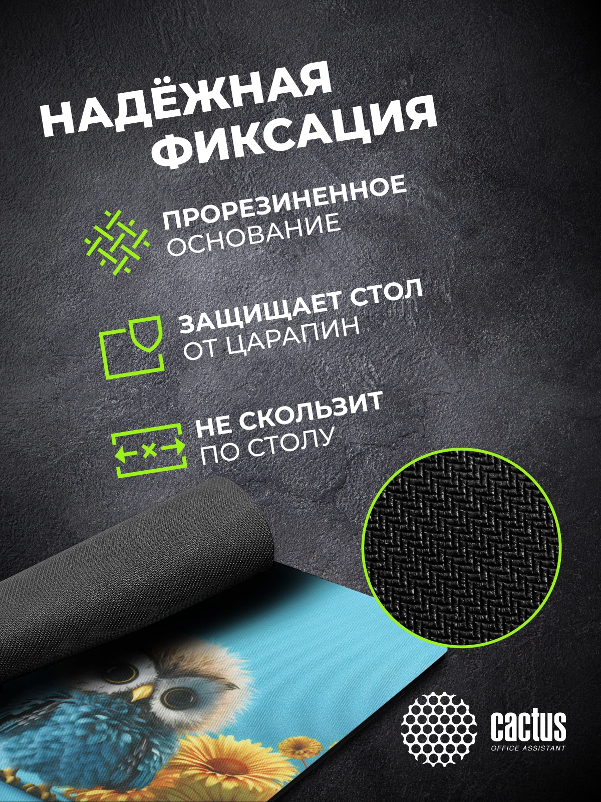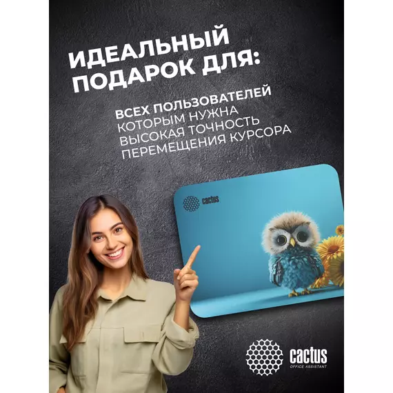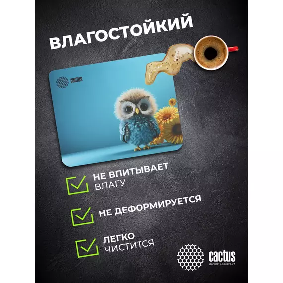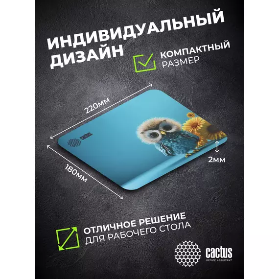 Коврик для мыши Cactus Owl blue 220x180x2мм [CS-MPC-P07XS]