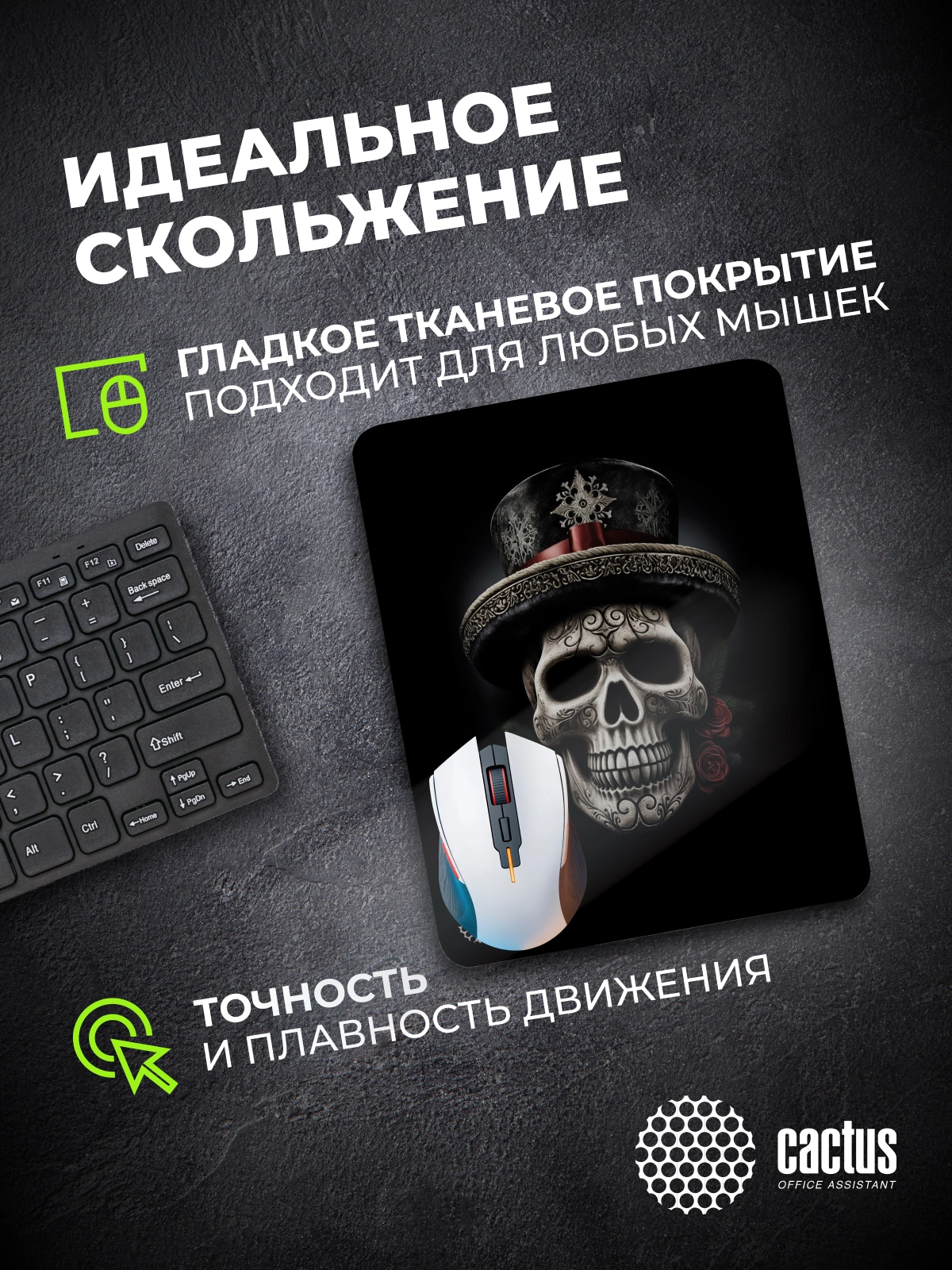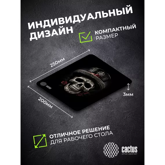 Коврик для мыши Cactus Scull рисунок 250x200x3мм [CS-MP-D05S]