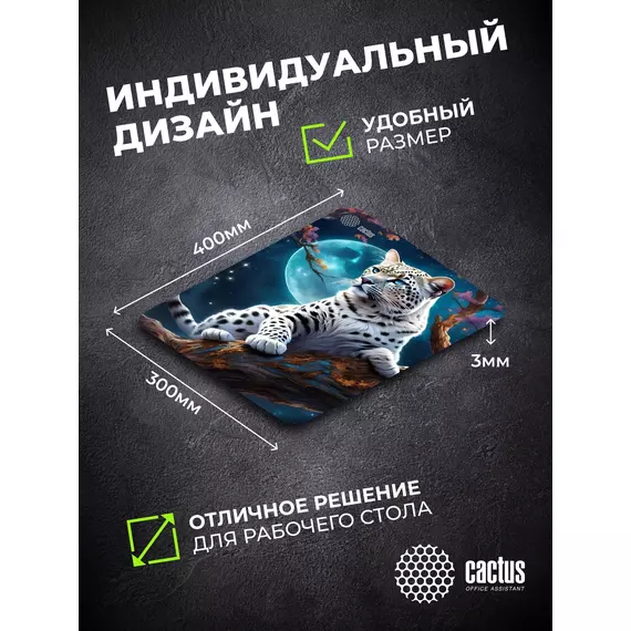 Коврик для мыши Cactus Snow Leopard рисунок 400x300x3мм [CS-MP-PRO16XL]