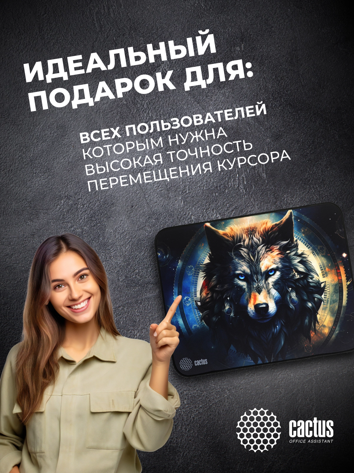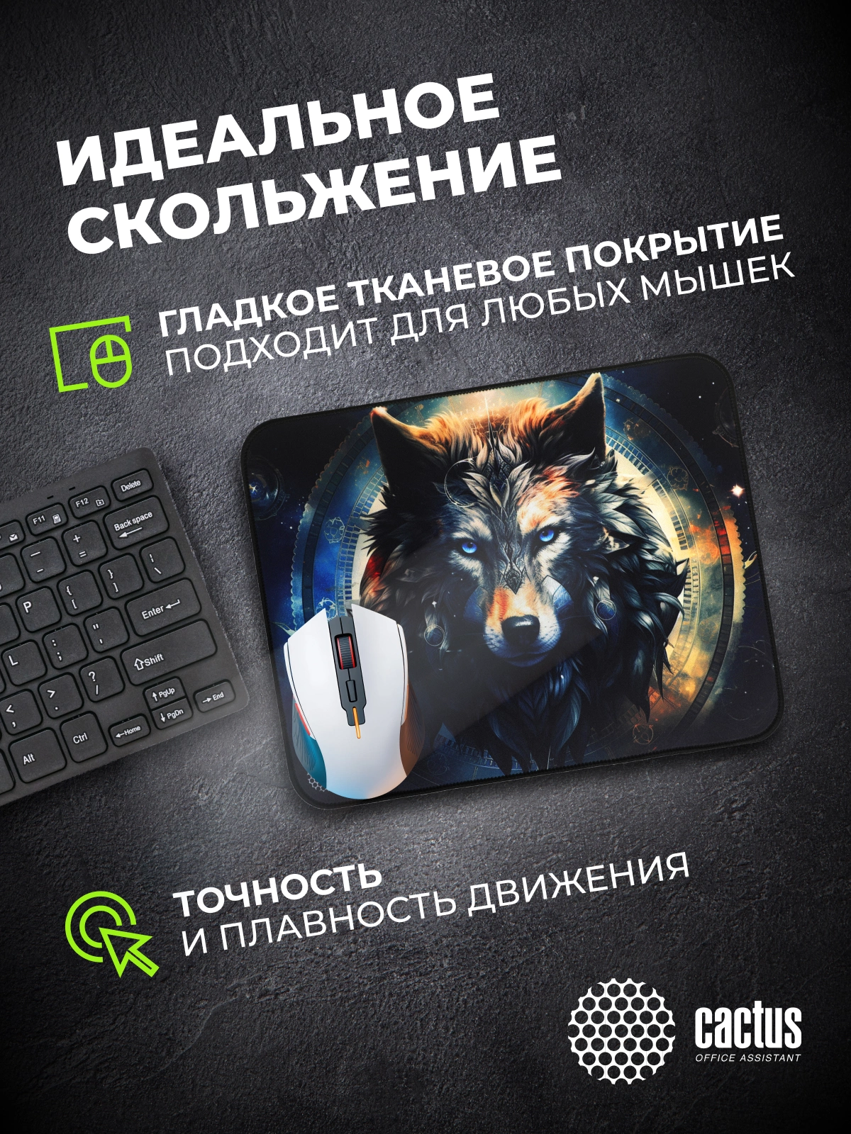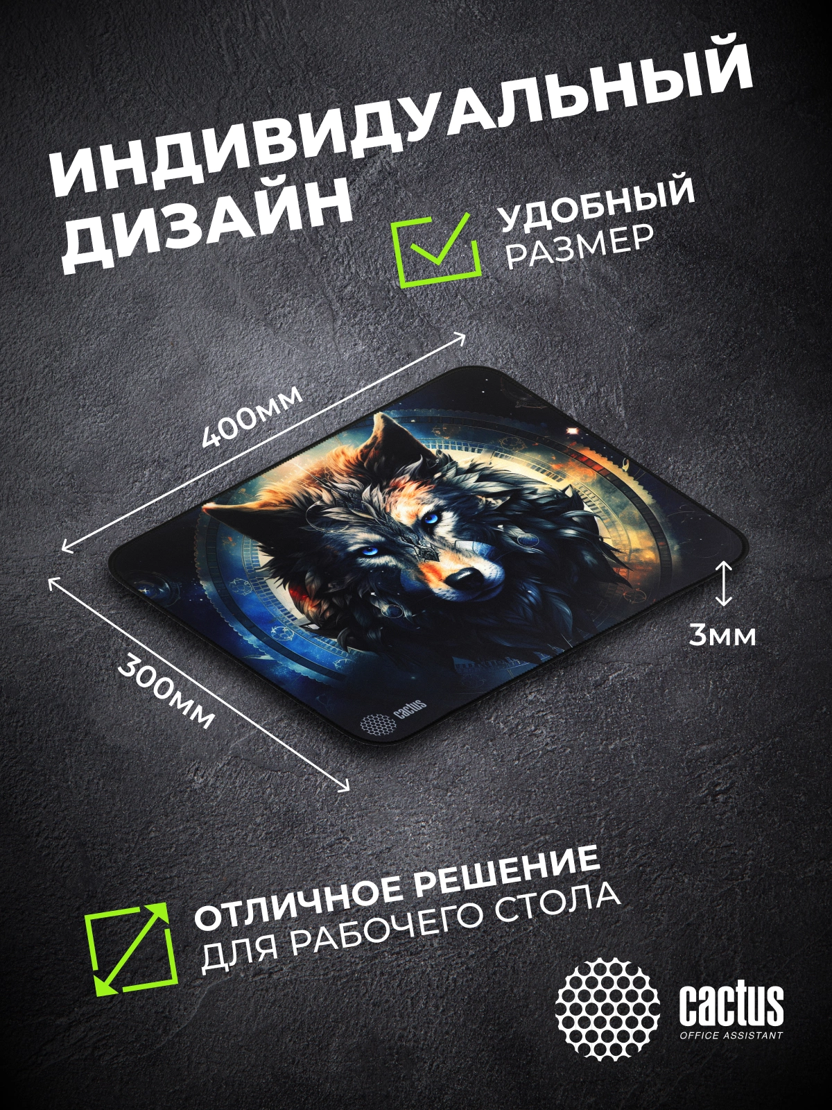 Коврик для мыши Cactus Wolf рисунок 400x300x3мм [CS-MP-PRO20XL]