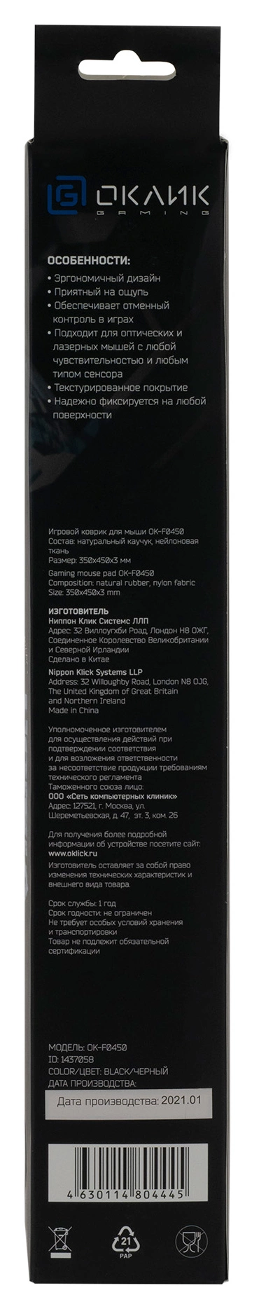 Коврик для мыши Oklick OK-F0450 Большой черный 450x350x3мм