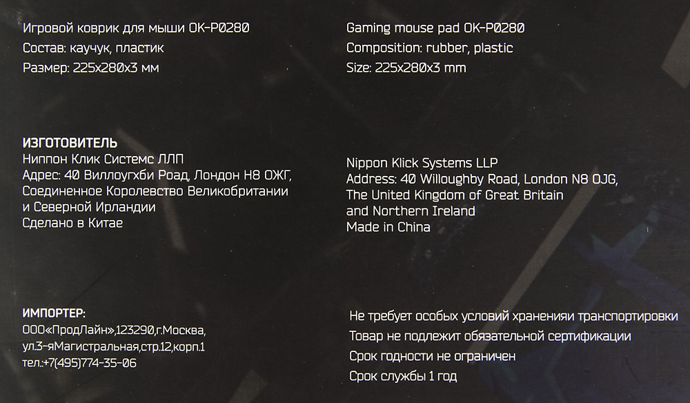 Коврик для мыши Oklick OK-P0280 Мини черный 280x225x3мм