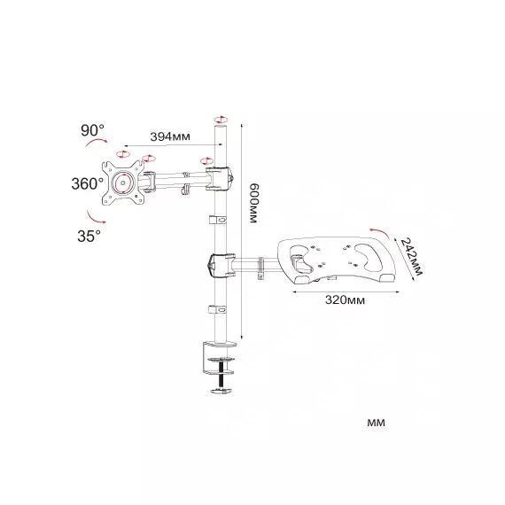 | Подходит для мониторов c диагональю | 15", 19", 22", 26" |