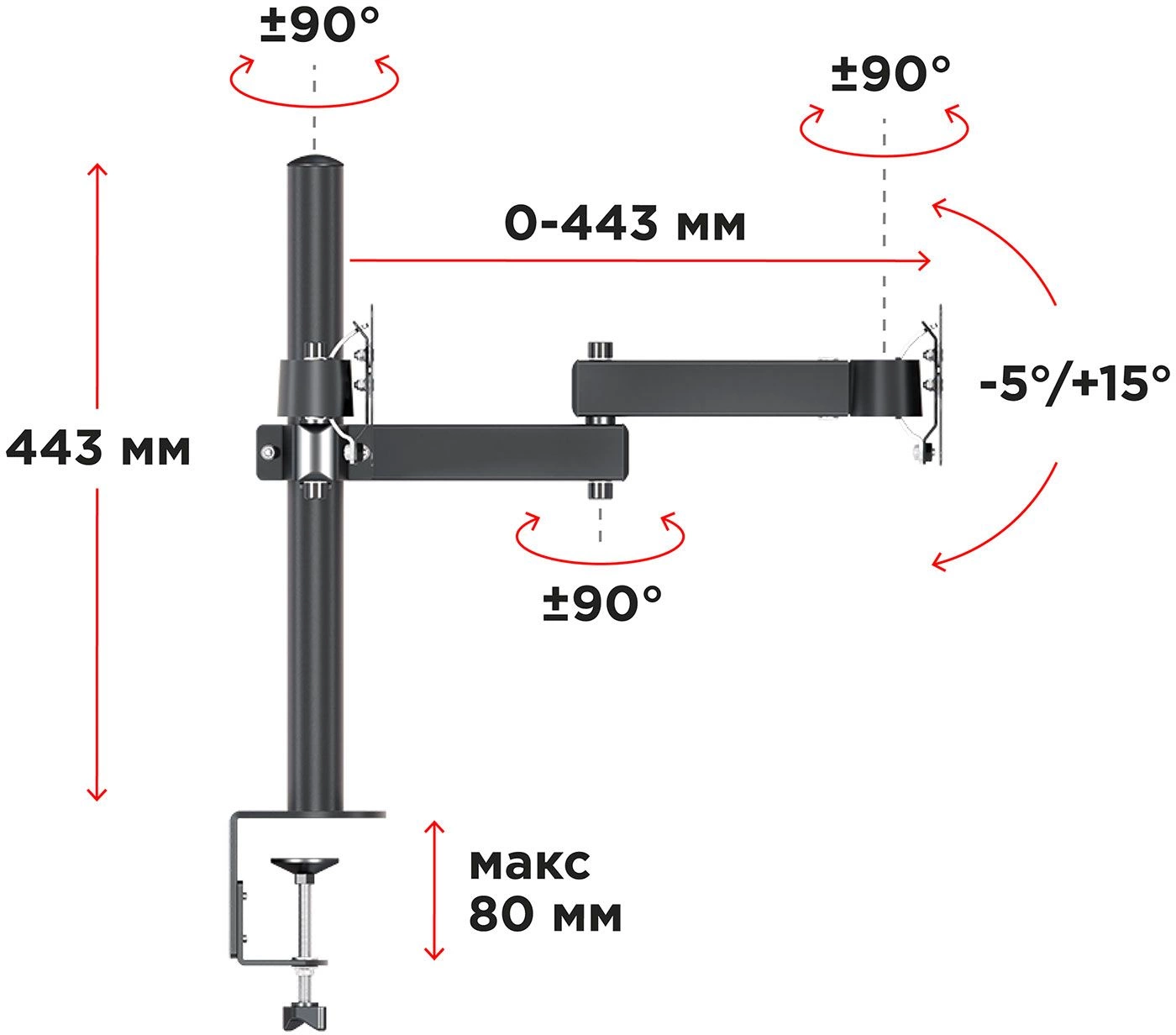 | Подходит для мониторов c диагональю | 13", 15", 19", 22", 26", 32" |