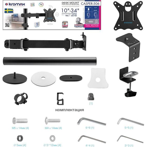 Кронштейн для мониторов Kromax CASPER-506 черный 10"-34" макс.10кг настольный поворот и наклон [90419]