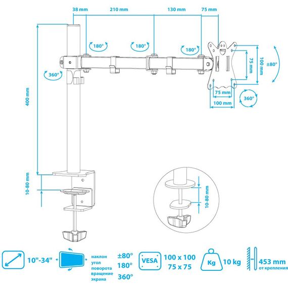 | Подходит для мониторов c диагональю | 15", 19", 22", 26", 32" |