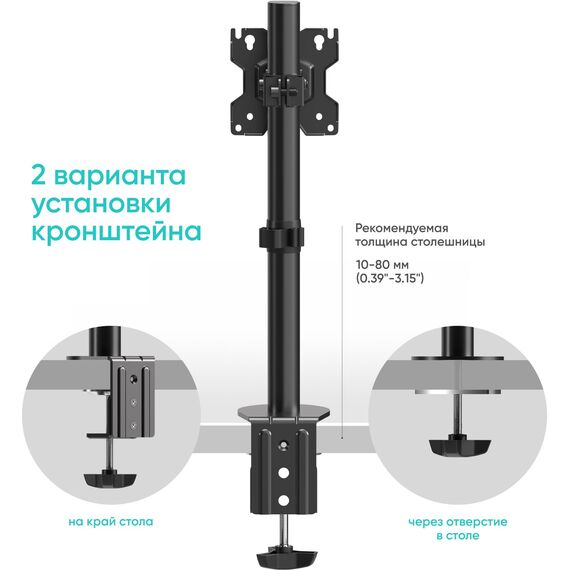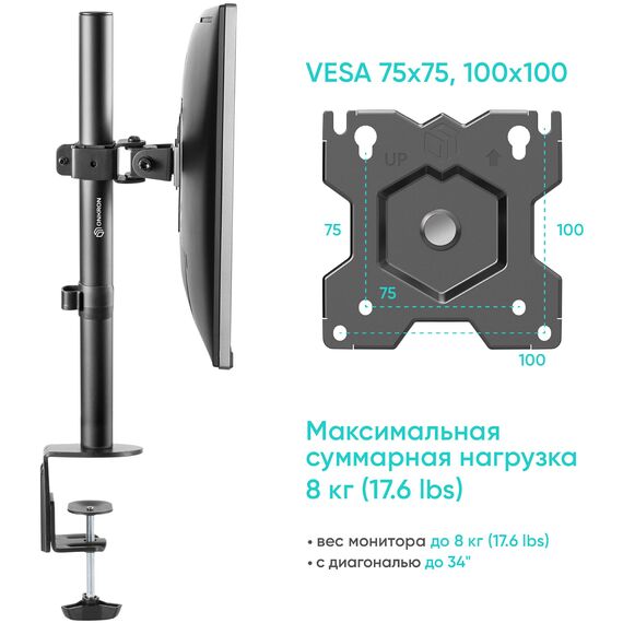 Настольный кронштейн ONKRON D101E подходит для мониторов диагональю от 13 до 34 дюймов и весом до 10 кг.