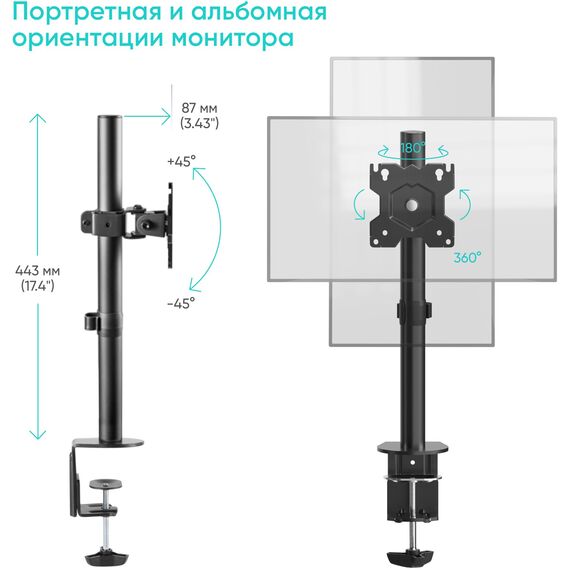 Кронштейн для мониторов ONKRON D101E черный 13"-34" макс.10кг настольный поворот и наклон