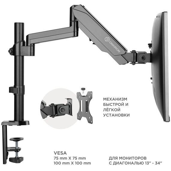 Кронштейн для мониторов ONKRON G70 черный 13"-34" макс.8кг настольный поворот и наклон верт.перемещ.