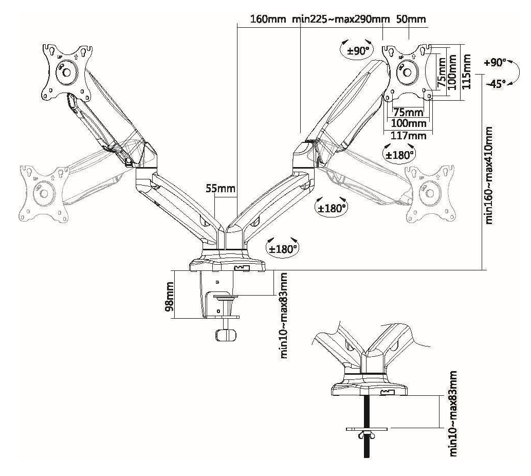 | Подходит для мониторов c диагональю | 15", 19", 22", 26" |