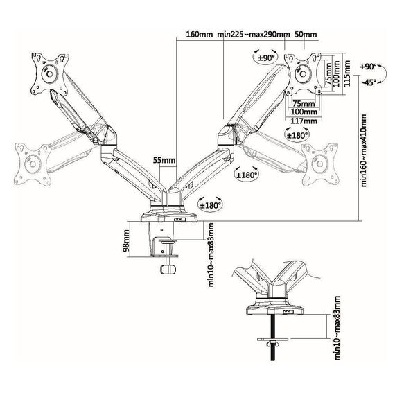 Кронштейн для мониторов Ultramounts UM705 черный 13-27 макс.13кг настольный поворот и наклон верт.перемещ.