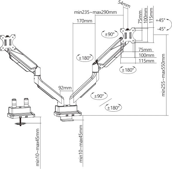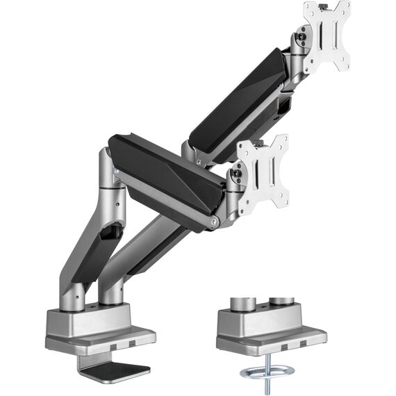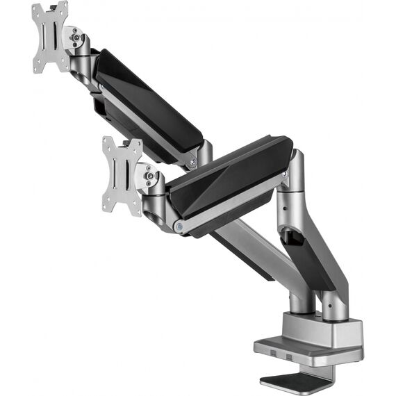 | Особенности | Настольный кронштейн для монитора с системой газ-лифт. Конструкция со свободным наклоном позволит легко регулировать наклон вперед или назад для лучшего обзора и уменьшения бликов. |