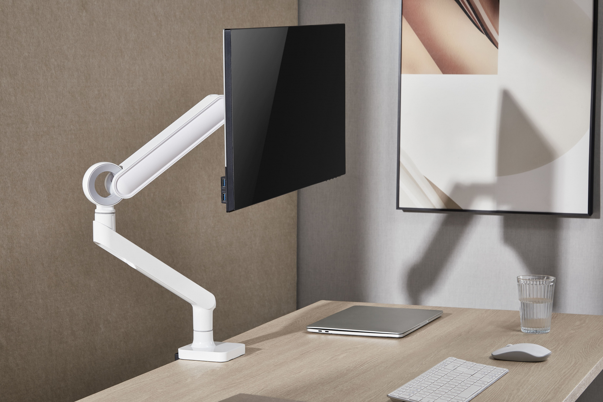 | Особенности | Настольный кронштейн для монитора с системой газ-лифт. Встроенный пружинный механизм натяжения поможет для идеальной регулировки веса. |