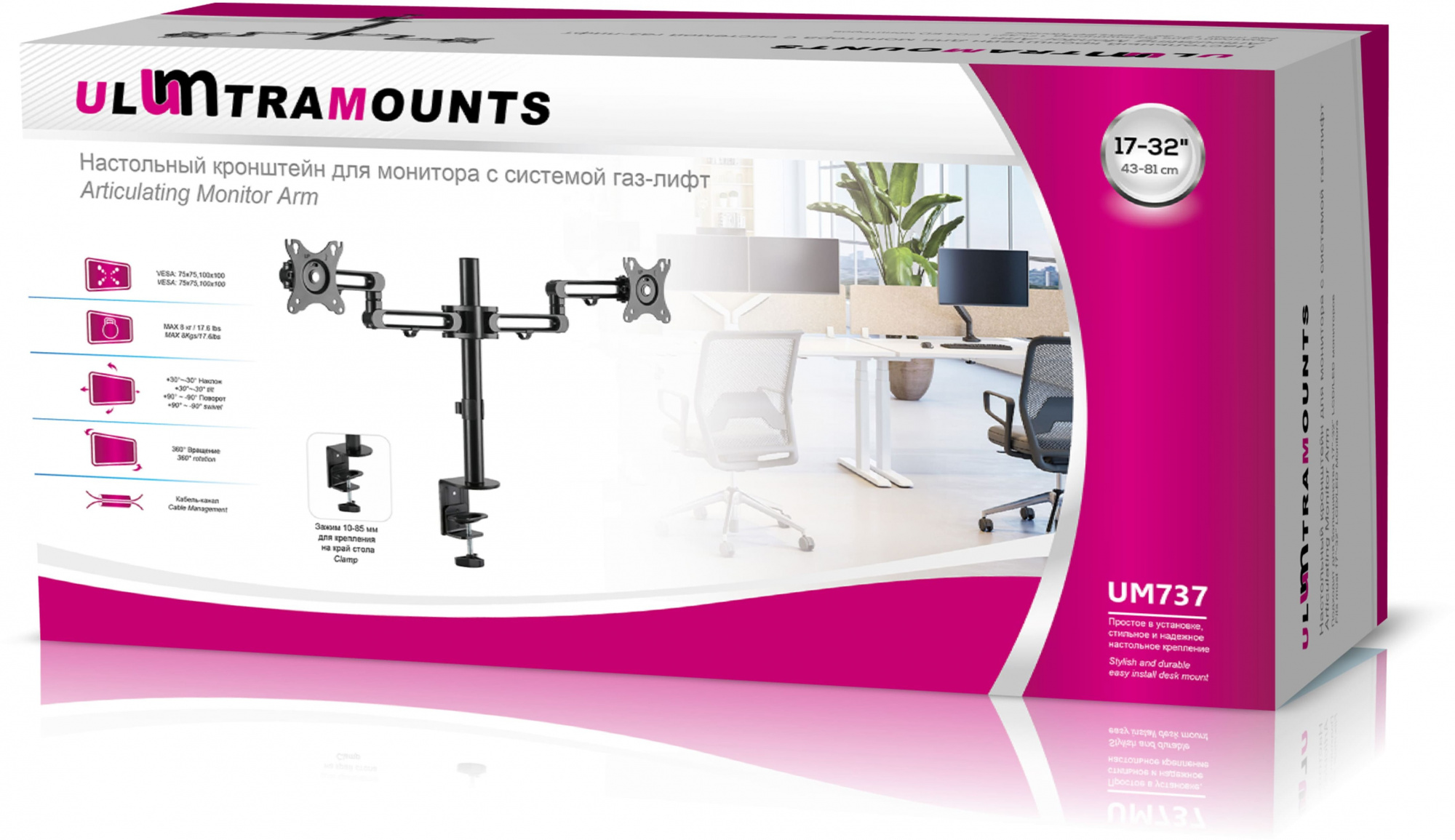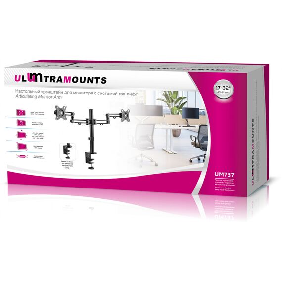 Кронштейн для мониторов Ultramounts UM737 черный 17-32 макс.8кг крепление к столешнице поворот и наклон