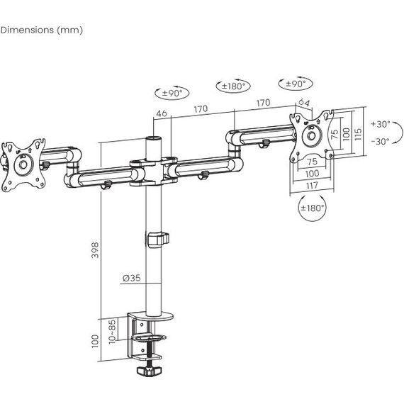 | Особенности | Настольный кронштейн для монитора с системой газ-лифт. Конструкция со свободным наклоном позволяет легко регулировать наклон вперед или назад для лучшего обзора и уменьшения бликов. |