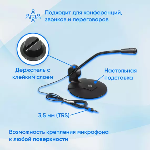 | Особенности | Микрофон для компьютера на поворотной опоре. Специальная подставка с поворотным держателем позволяет удобно расположить микрофон на столе. Дополнительный держатель с клейким слоем обеспечивает крепление на рамку монитора или другую вертикальную поверхность. |