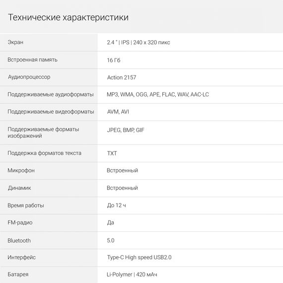 | Поддержка аудио форматов | MP3, WMA, OGG, APE, FLAC, WAV, AAC-LC |