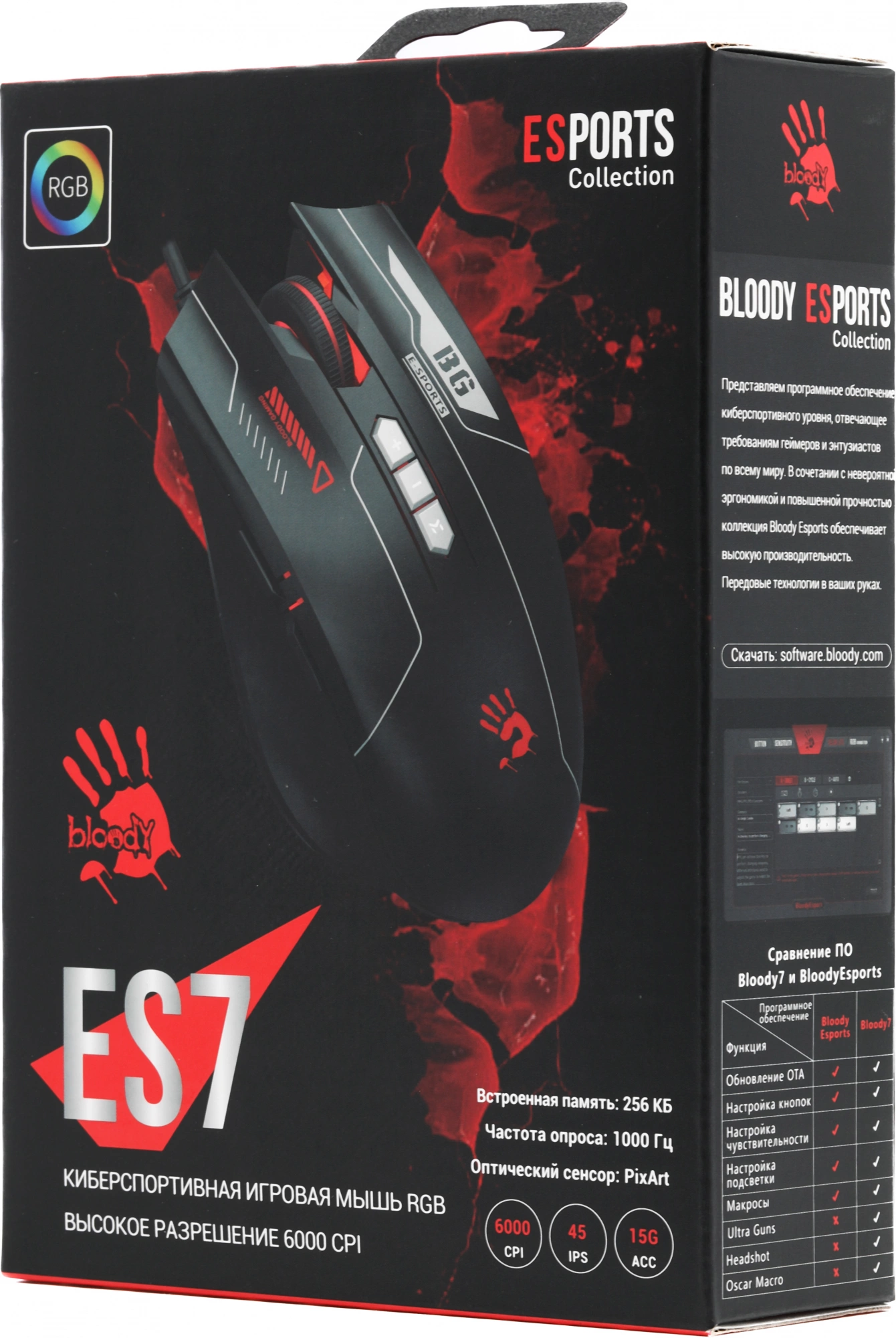 Мышь A4-Tech Bloody ES7 черный оптическая 6000dpi USB 8but