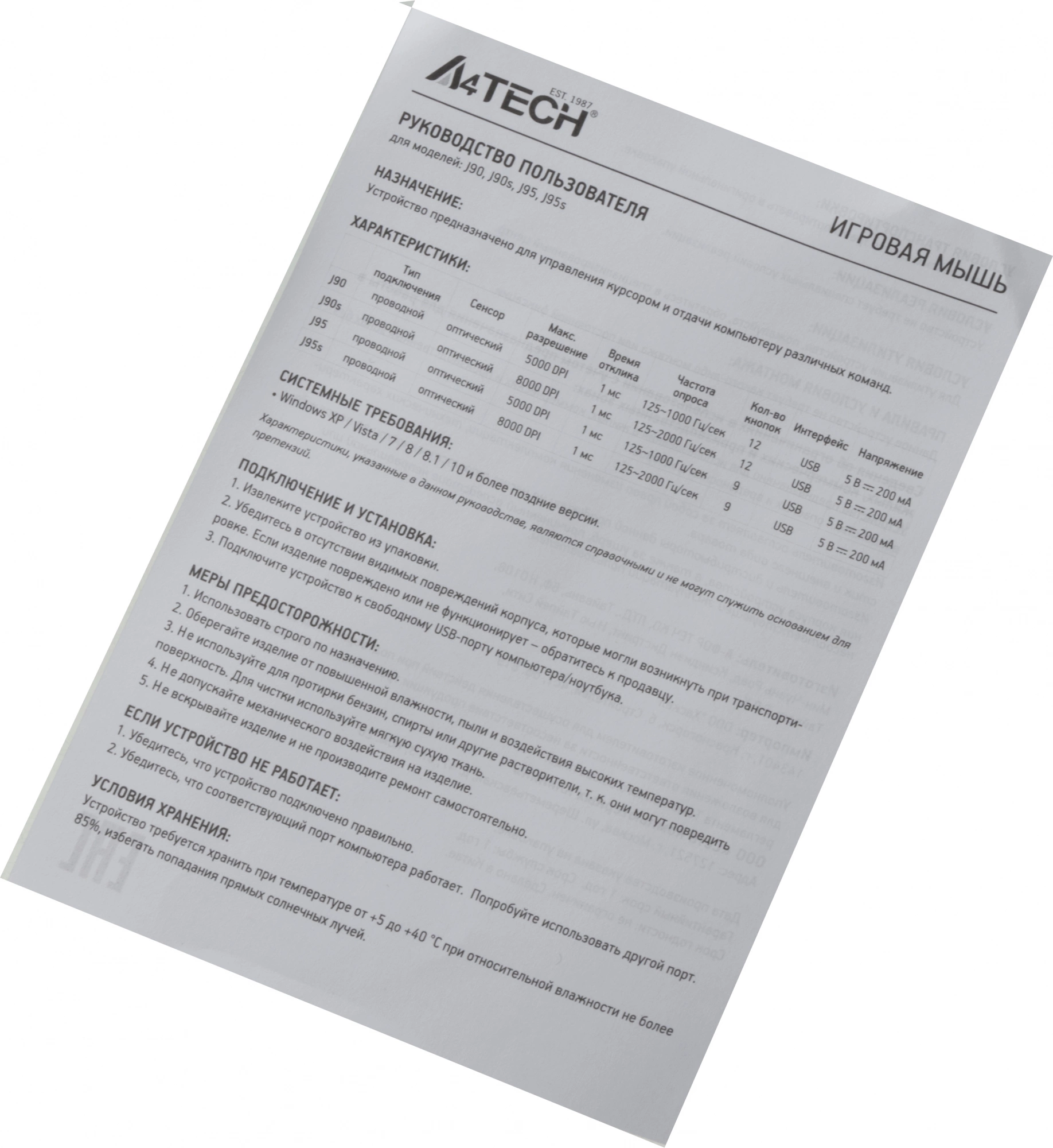 Мышь A4-Tech Bloody J95s GREY серый оптическая 8000dpi USB3.0 9but