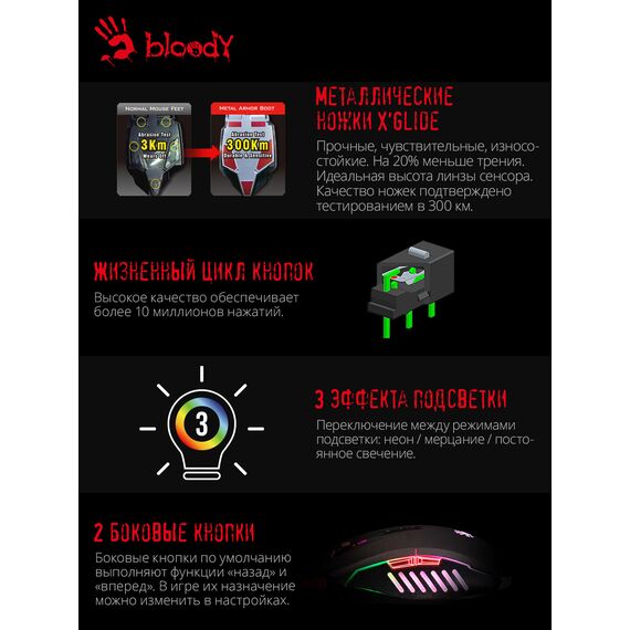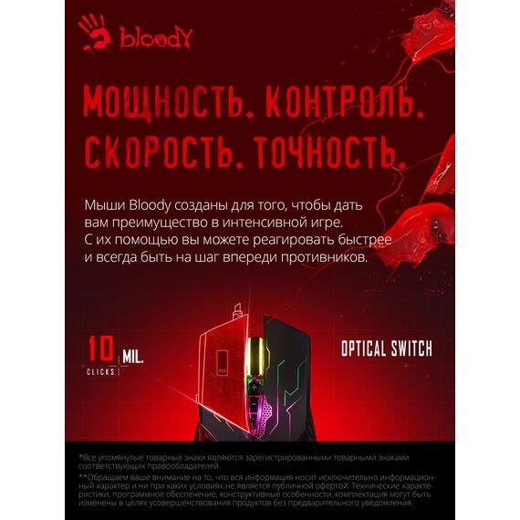 Мышь A4-Tech Bloody Q51 черный/рисунок оптическая 6200dpi USB 8but