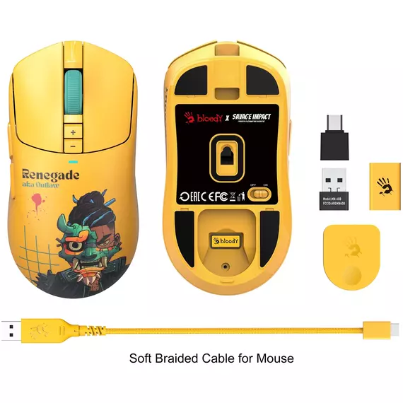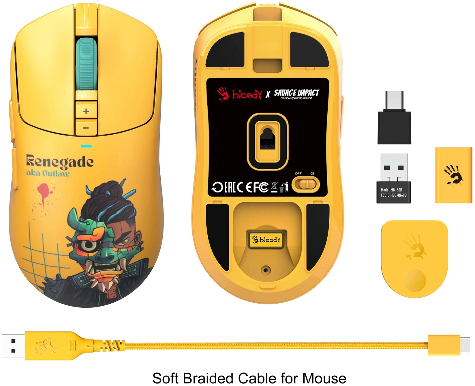 Мышь A4-Tech Bloody R72 Ultra желтый оптическая 20000dpi беспров. USB-C 6but