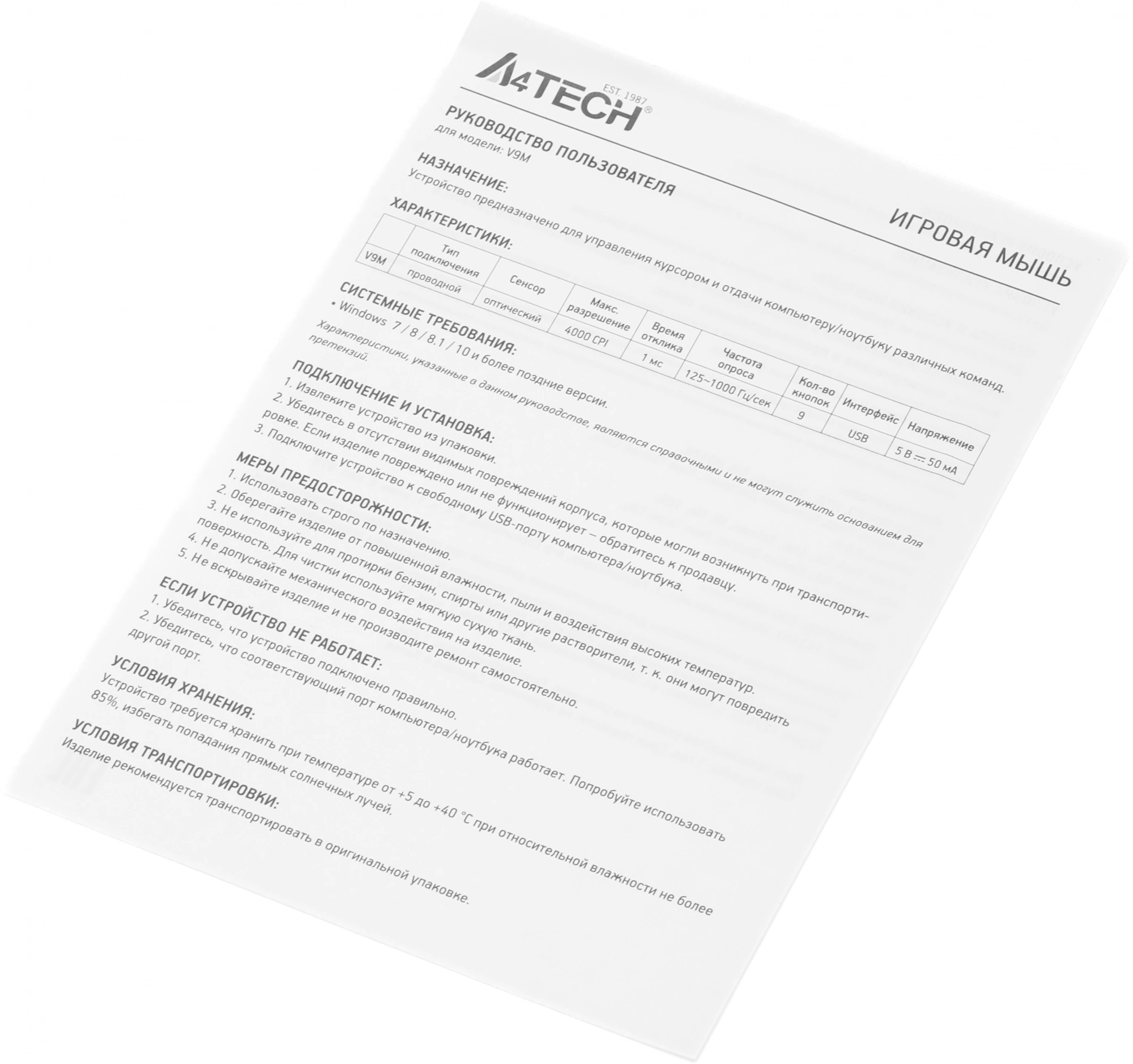 Описание A4-Tech Bloody V9M