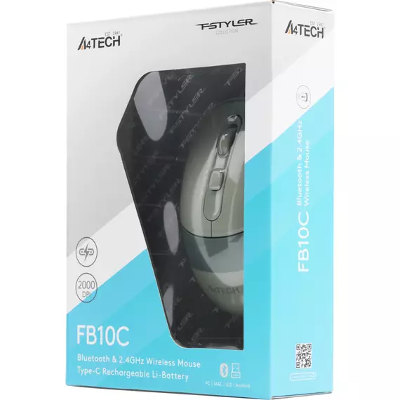 Мышь A4-Tech Fstyler FB10C MATCHA GREEN зеленый оптическая 2000dpi беспров. BT/Radio USB 4but