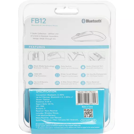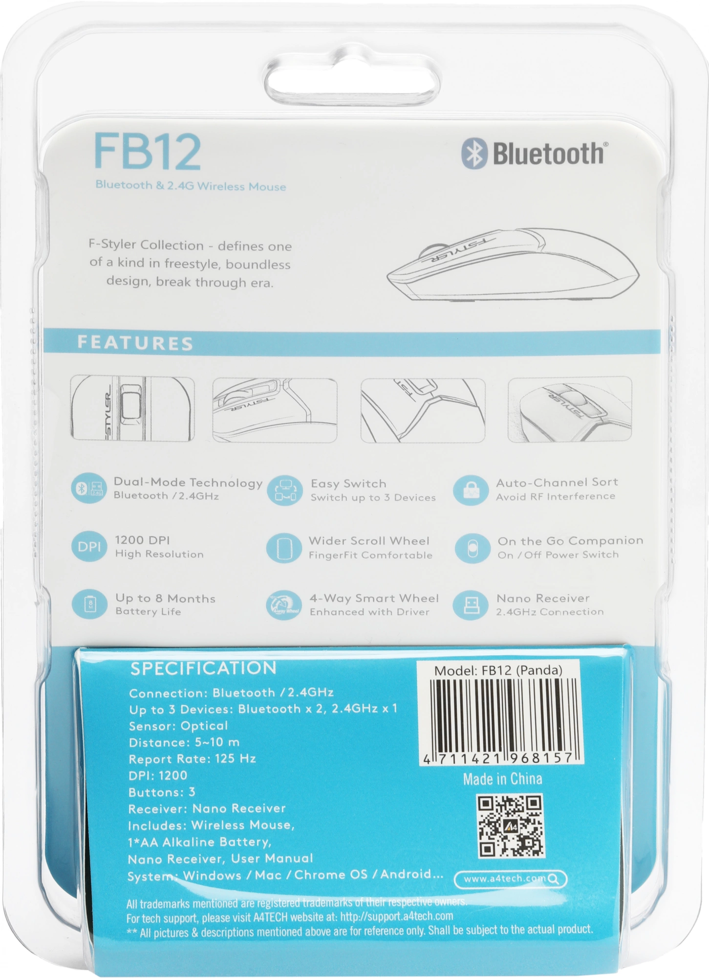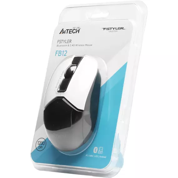 Мышь A4-Tech Fstyler FB12 PANDA белый/черный оптическая 1200dpi беспров. BT/Radio USB 3but