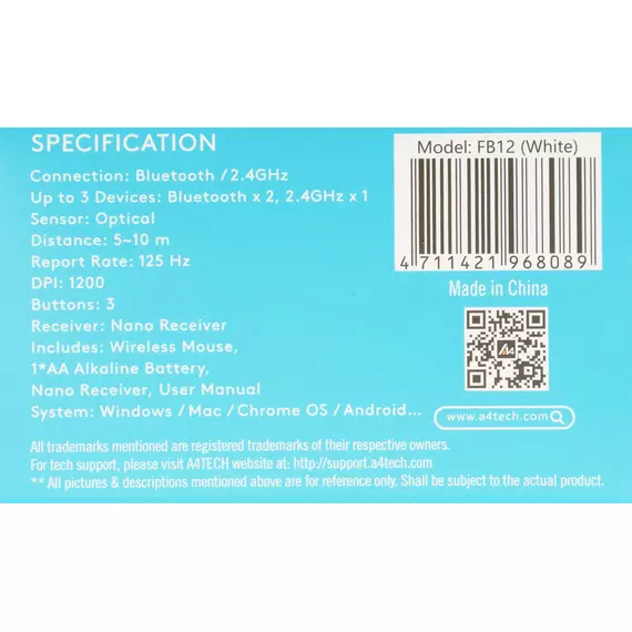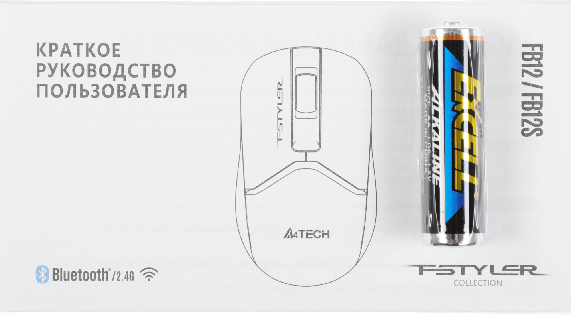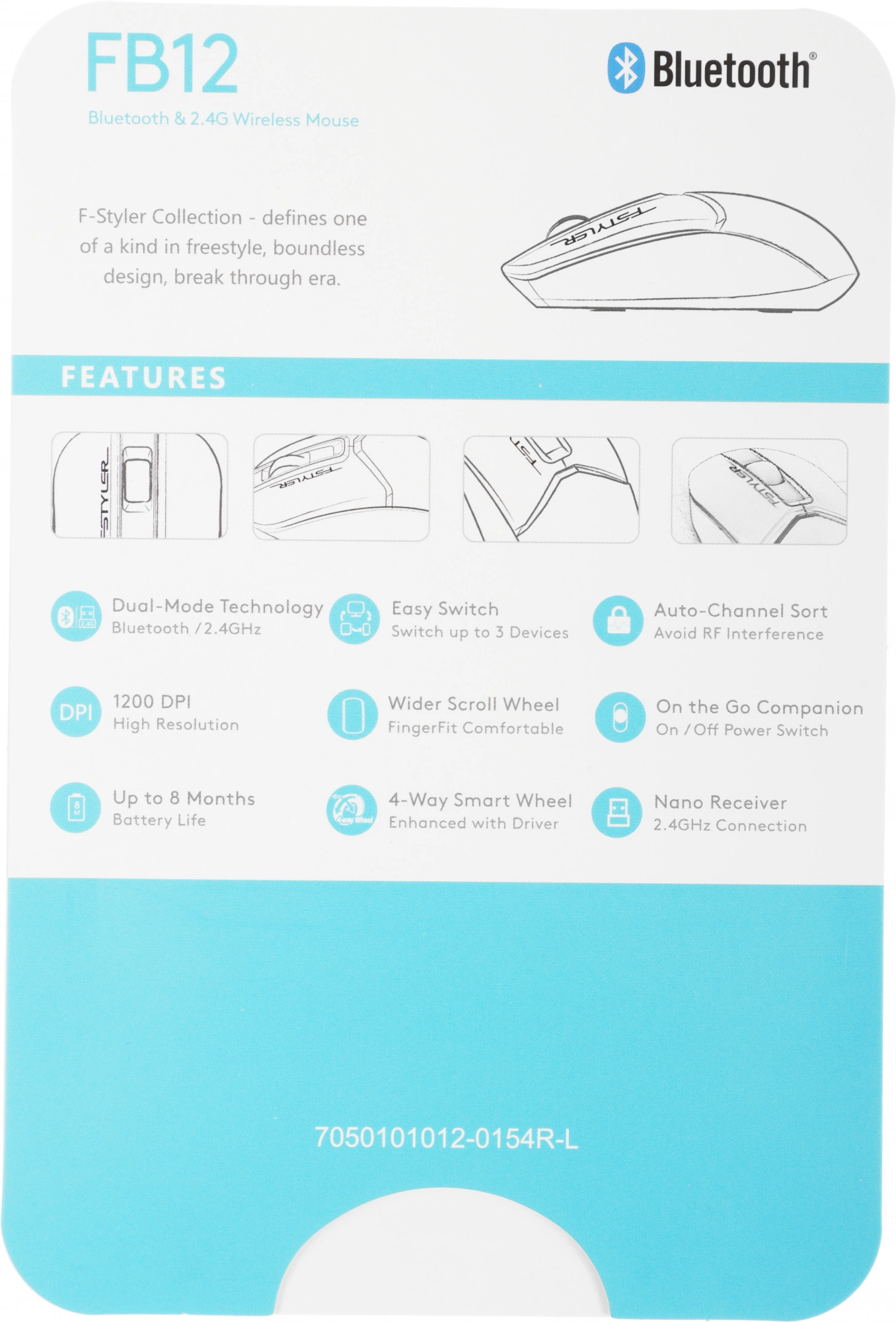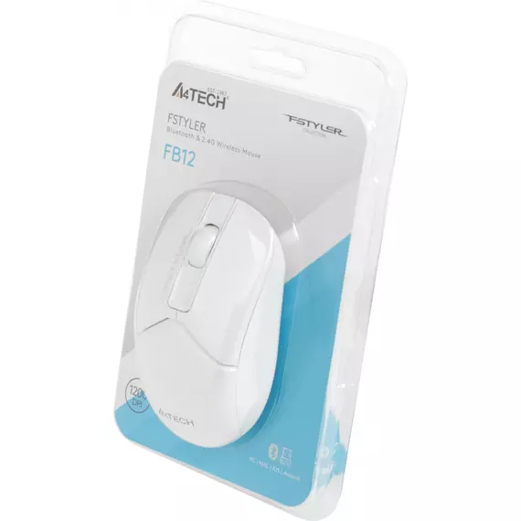 Мышь A4-Tech Fstyler FB12 WHITE белый оптическая 1200dpi беспров. BT/Radio USB 3but