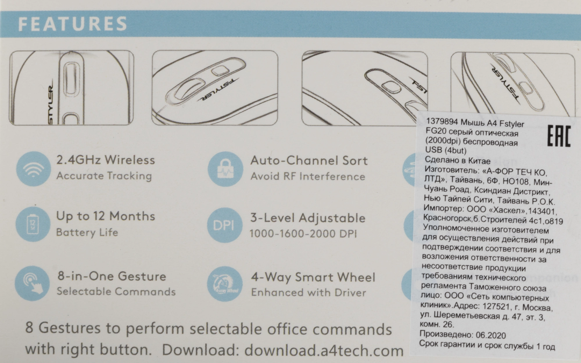 Наличие товара A4-Tech Fstyler FG20 [FG20 GEY]