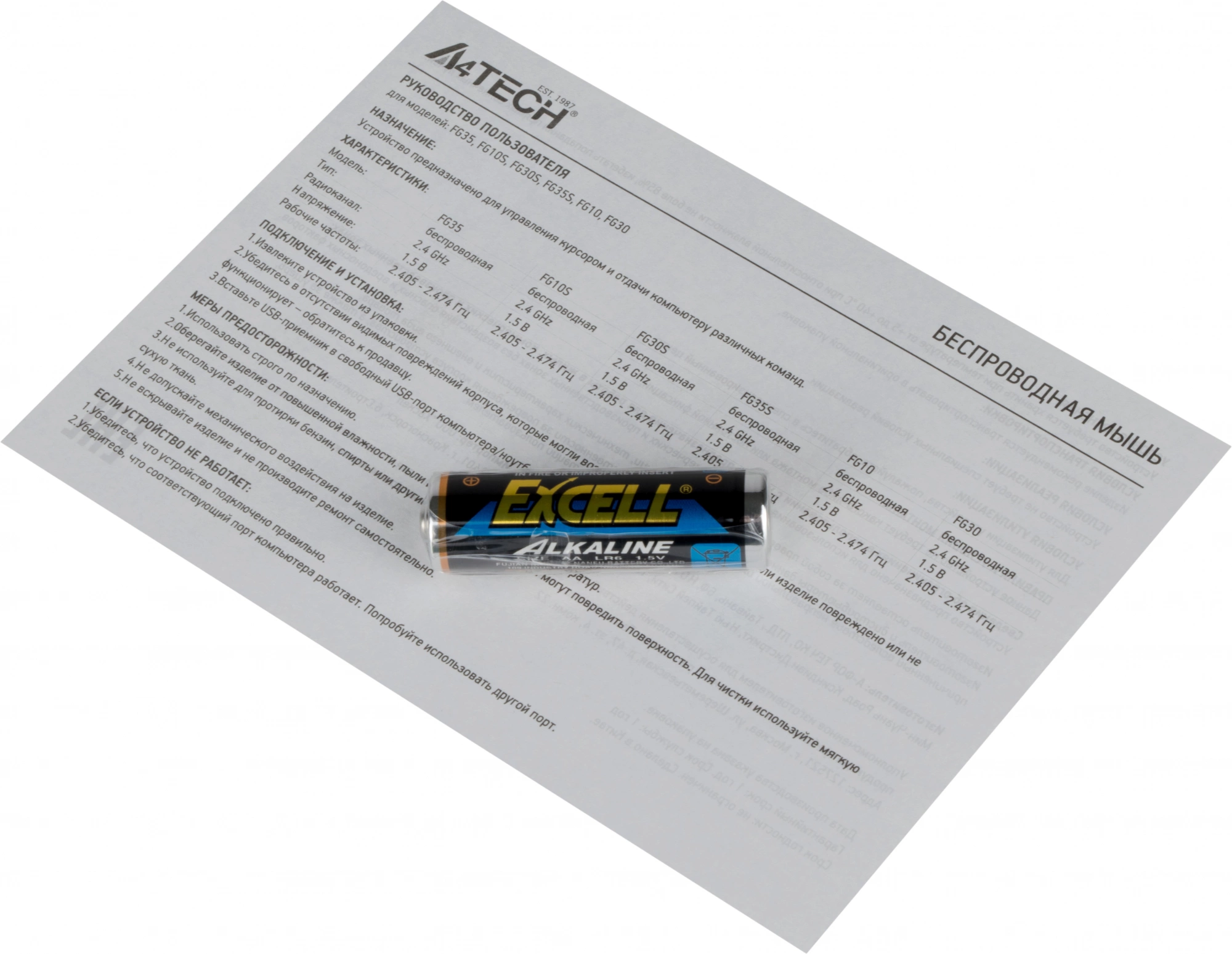 | Радиус действия мыши | 15 м |